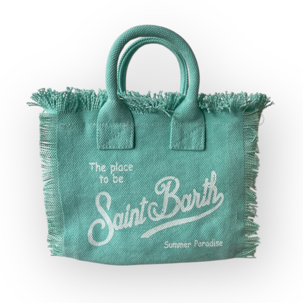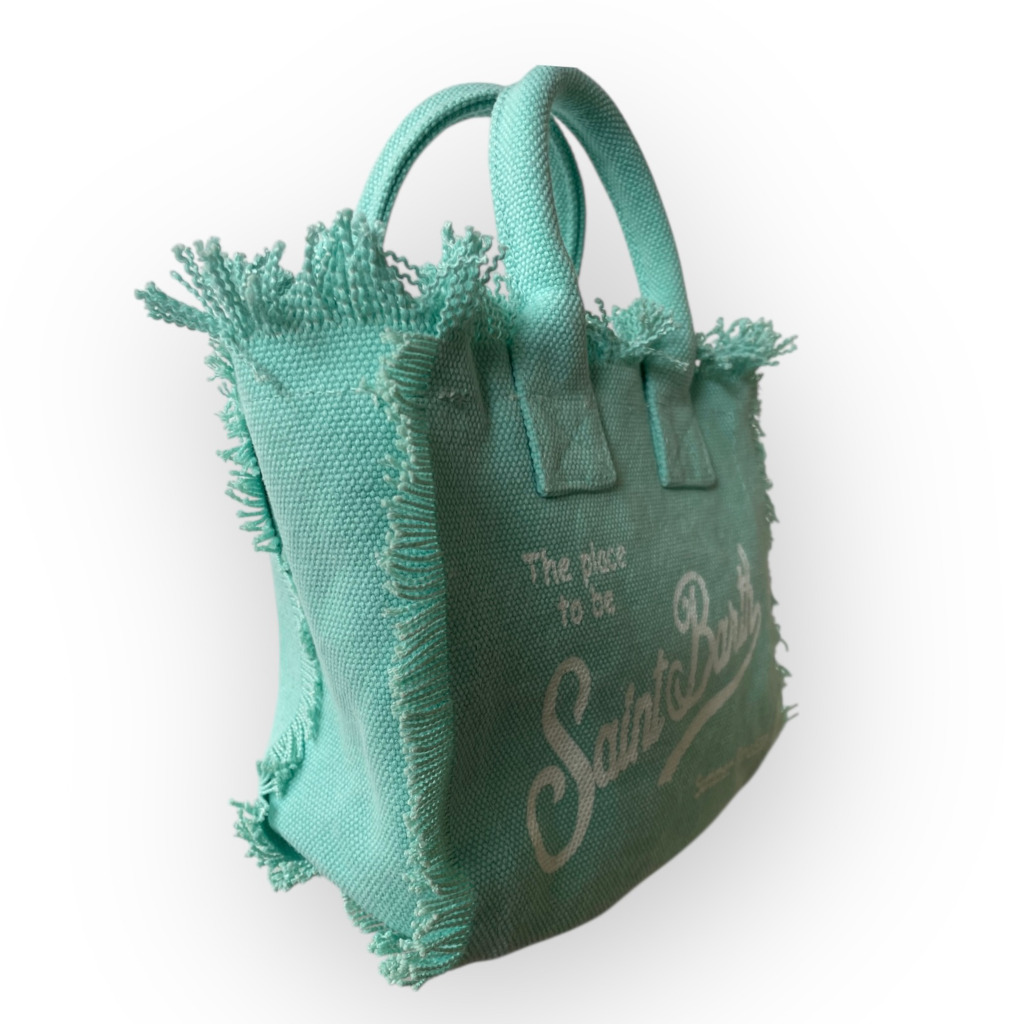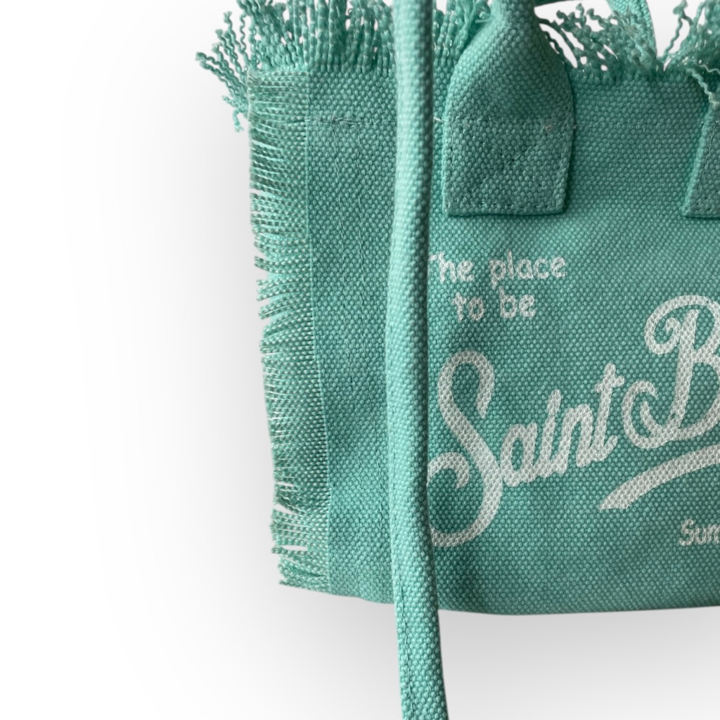 Scopri la Vanity Mini di MC2 Saint Barth nella brillante tonalità tiffany con scritta bianca, un accessorio fresco e vivace pensato per illuminare ogni outfit. Realizzata in cotone di alta qualità, questa mini bag dalle dimensioni 20x15x8 cm offre il perfetto equilibrio tra stile, leggerezza e funzionalità.