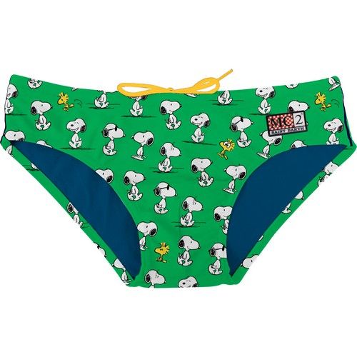 Costume slip della linea da bambino di Saint Barth. Stampa molto simpatica con Snoopy e Woodstock su fondo verde con laccio giallo.nnMATERIALE: 83% poliestere, 17% elastane.