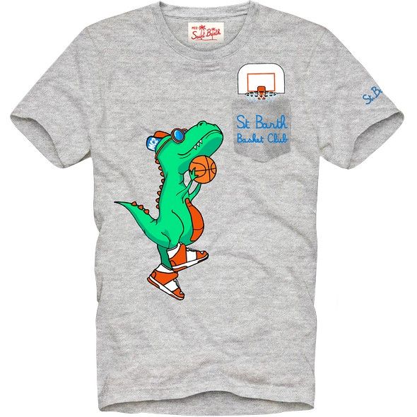 | Info Prodotto | T-shirt grigia con dinosauro che gioca a basket della linea di Saint Barth bambino. |