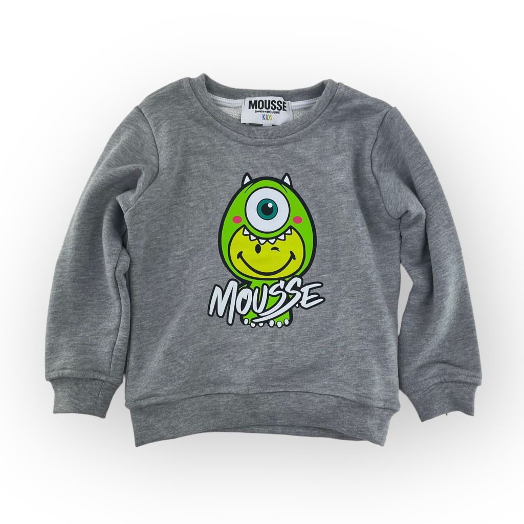 Felpa in cotone leggero della linea da bambino con stampa Wazowski e fondo grigio.