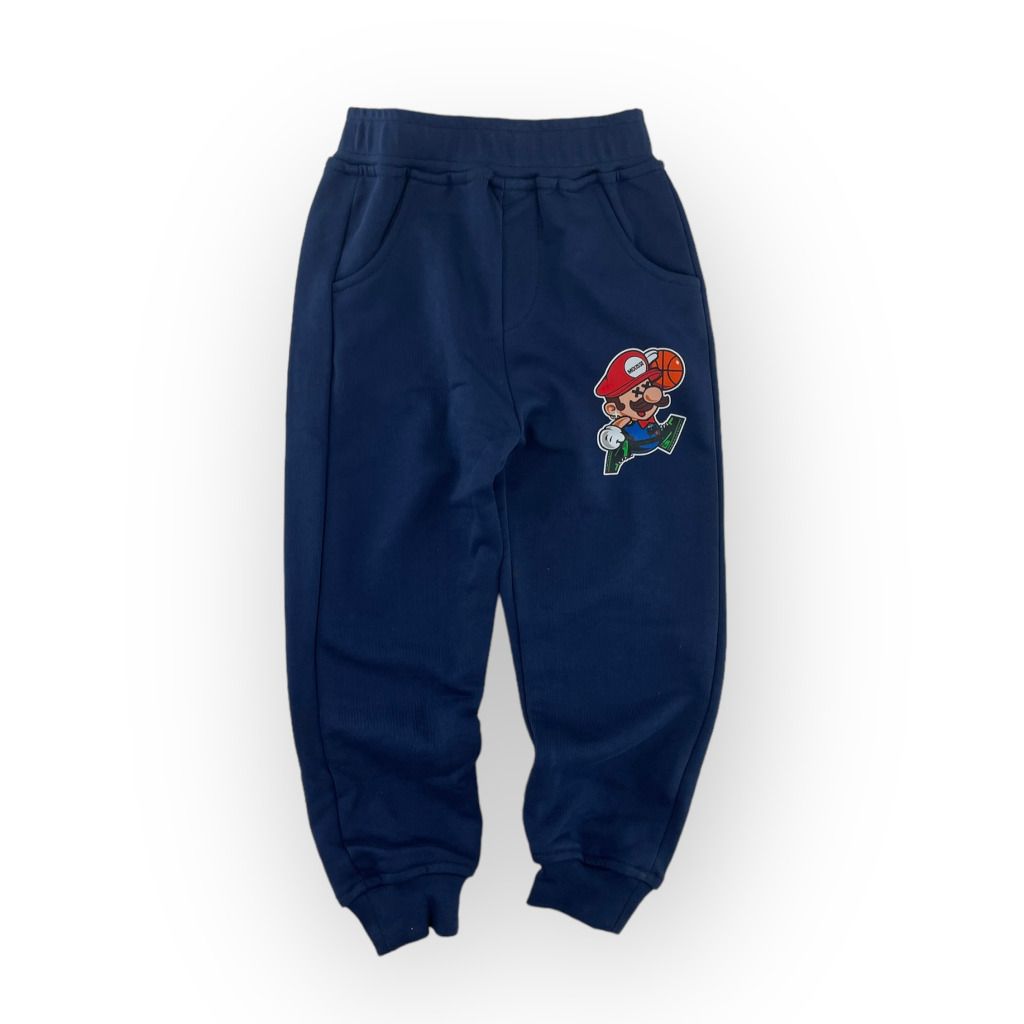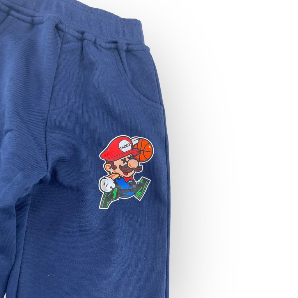Pantalone in cotone leggero in una bellissima tonalitโ€ฆ di azzurro della linea da bambino Mousse con stampa Super Mario.