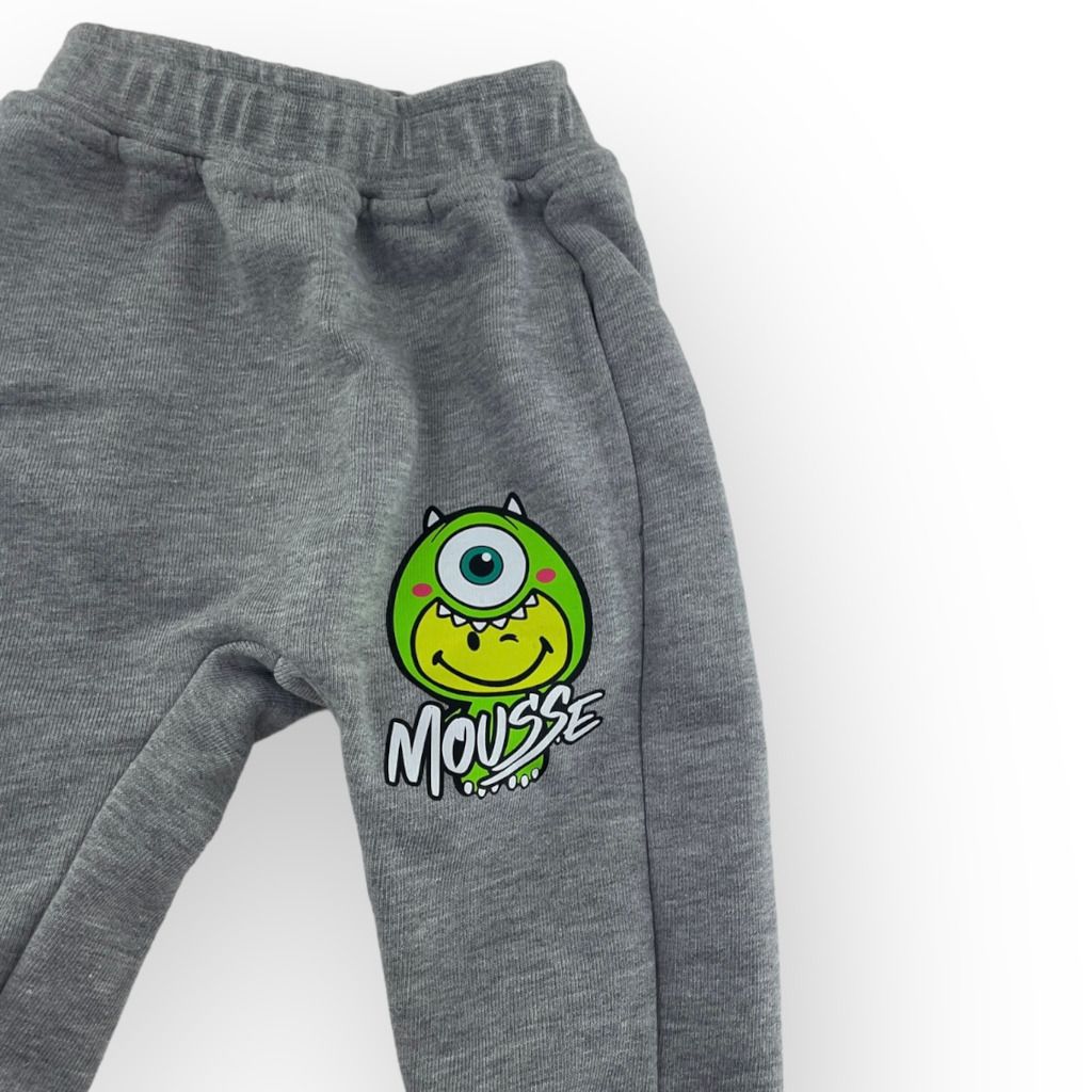 Pantalone di tuta grigio con stampa Monster della linea Mousse.