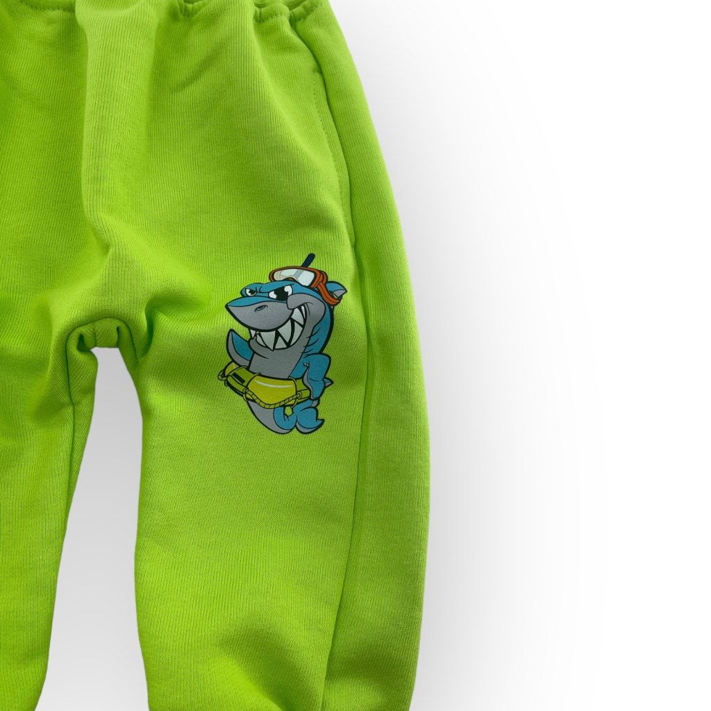 Pantalone verde di tuta con fantasia squalo della linea da bambino Mousse.