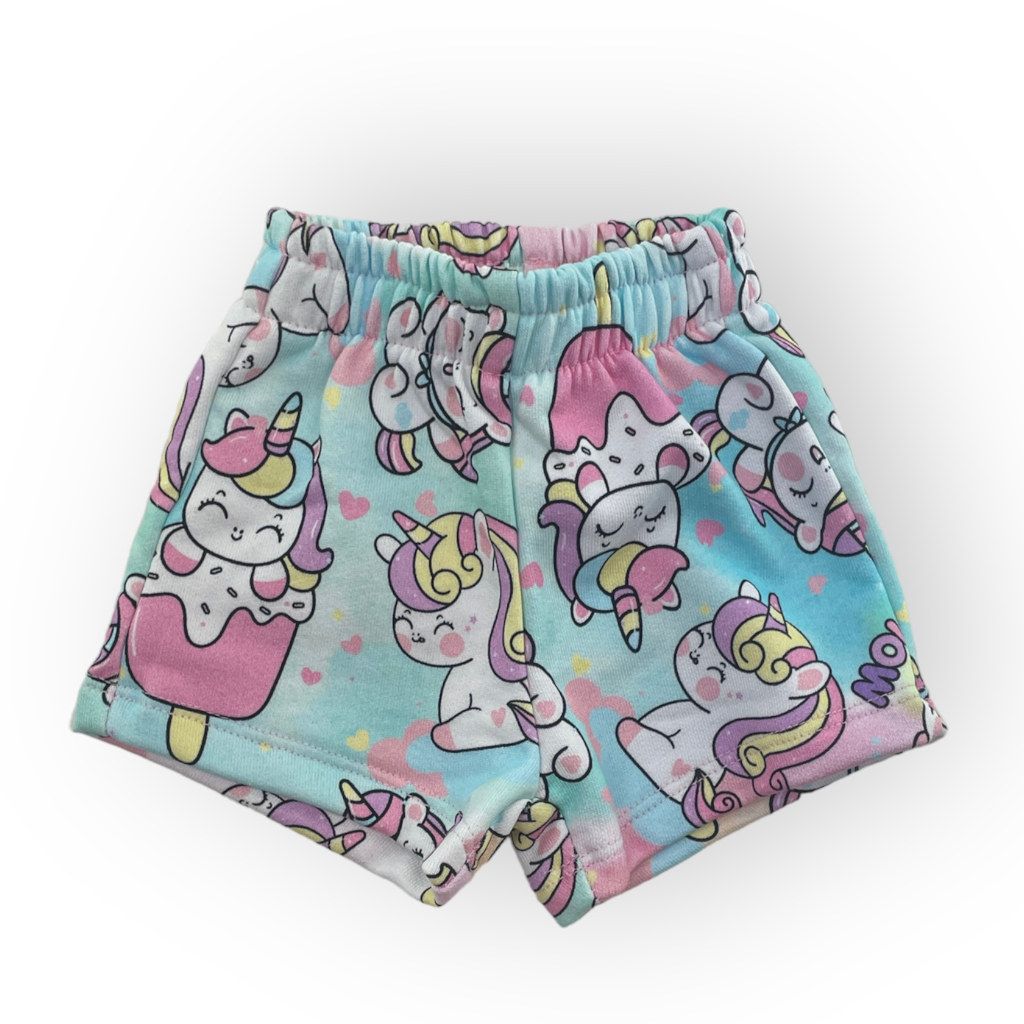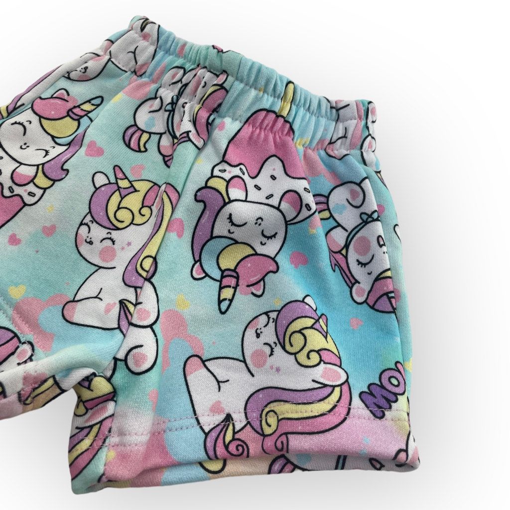 Short con stampa unicorni, morbido e versatile, un pantaloncino perfetto per l’estate, sportivo e particolare.