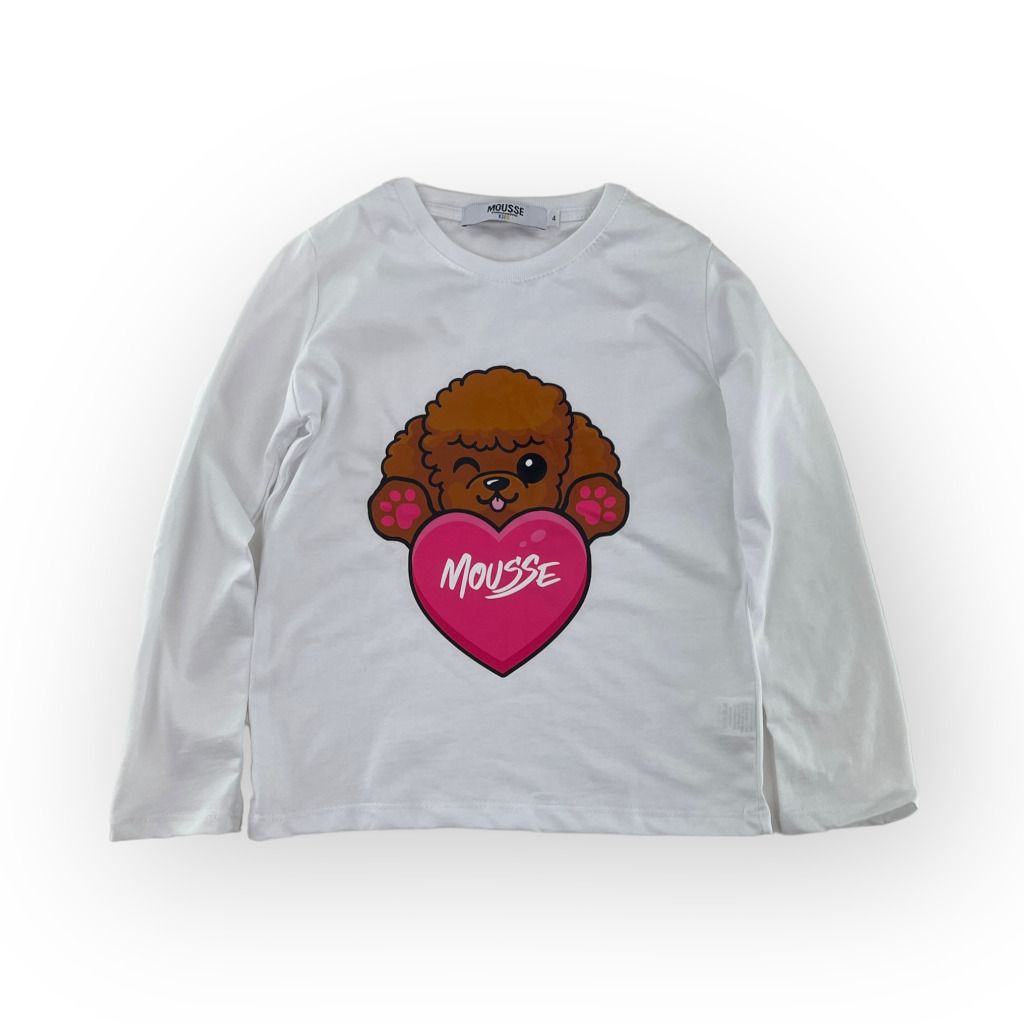 T-shirt in cotone a maniche lunghe della linea bambina Mousse. Bellissima la stampa con cagnolino.