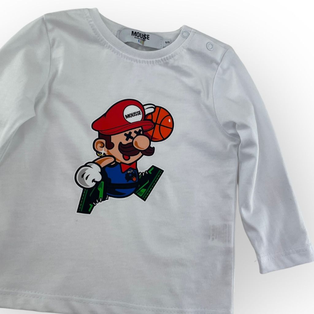T-shirt in cotone della linea baby Mousse da bambino con stampa Super Mario.