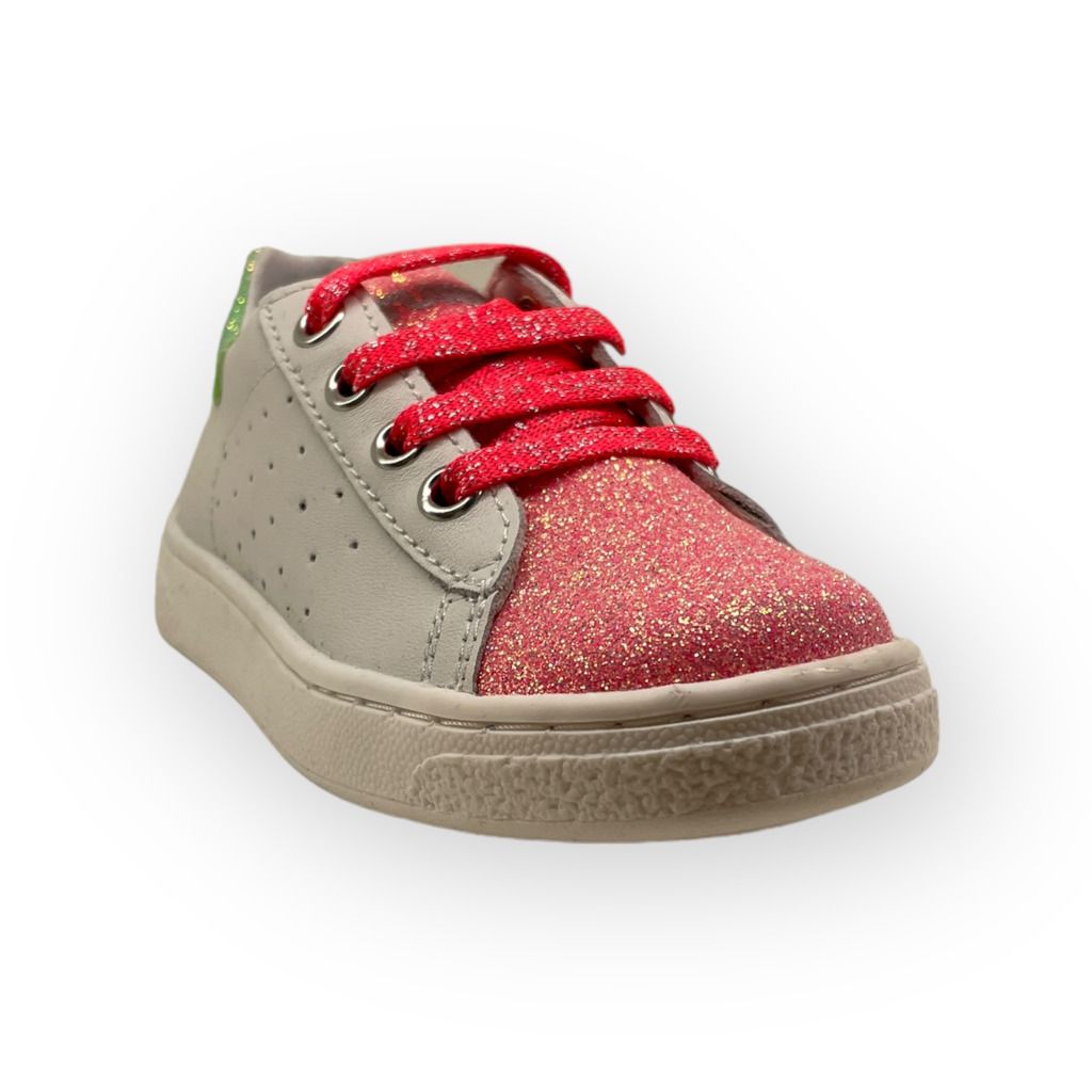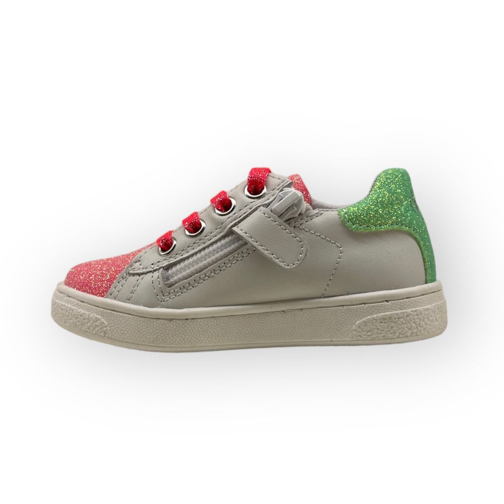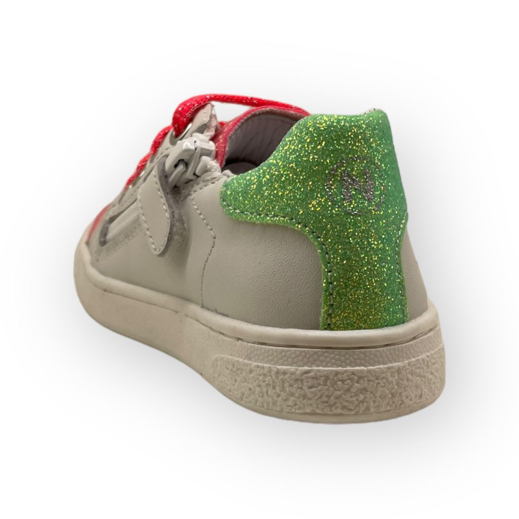 Scarpa bianca Naturino con punta glitter, zip laterale per facilitare la calzata.