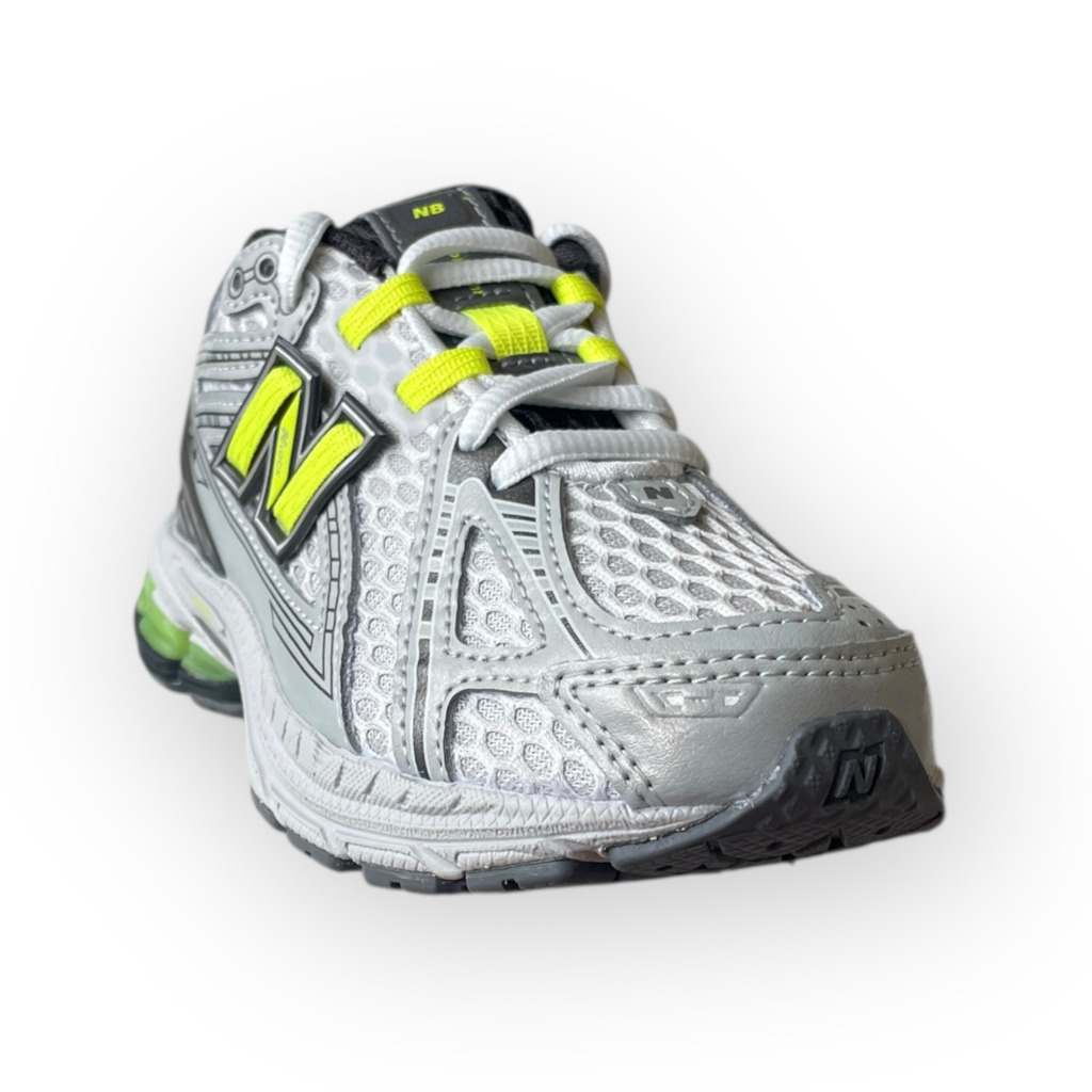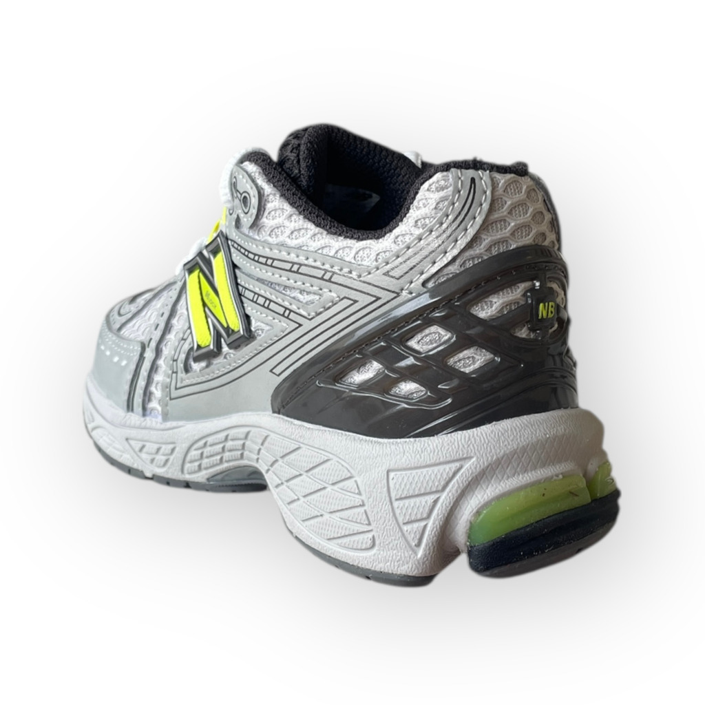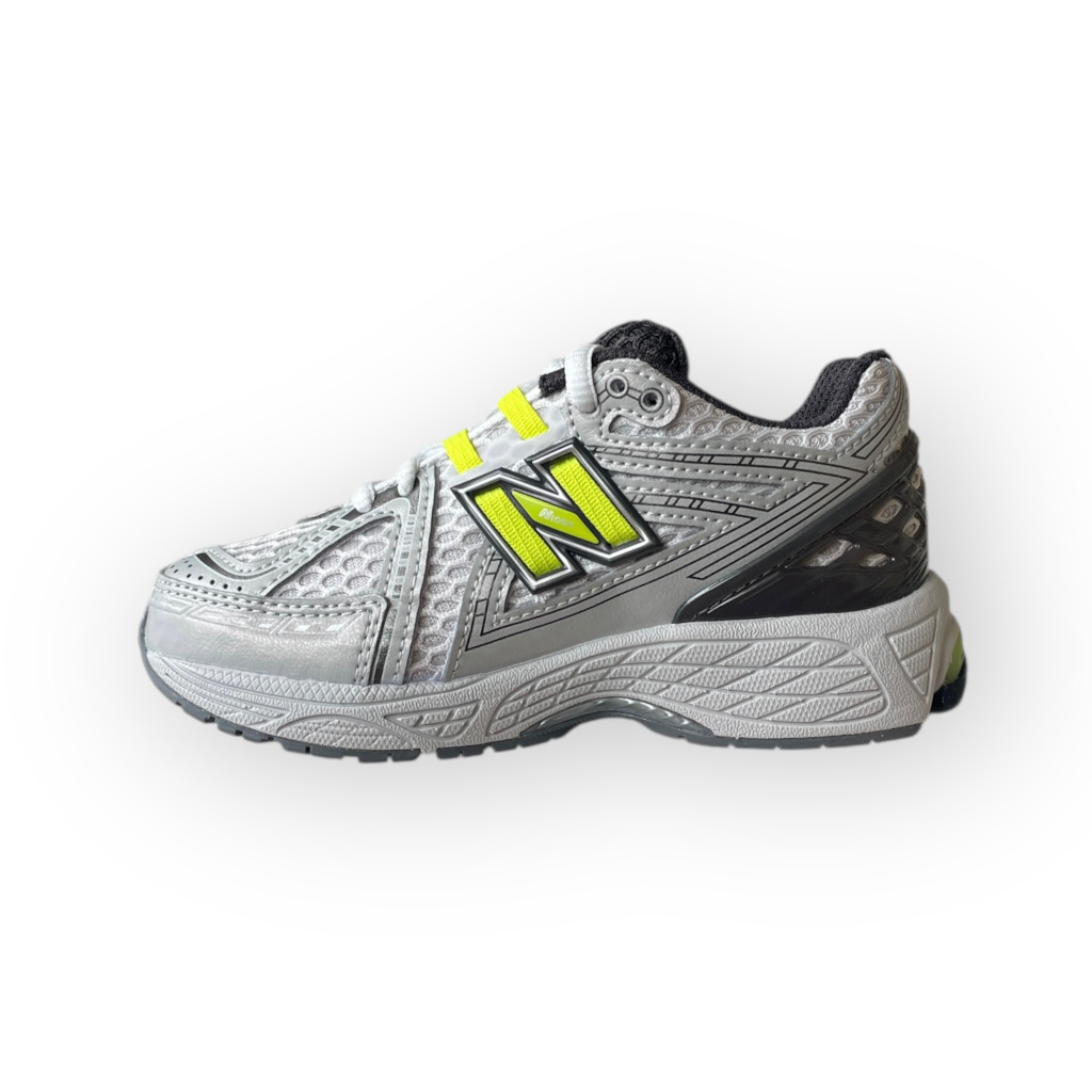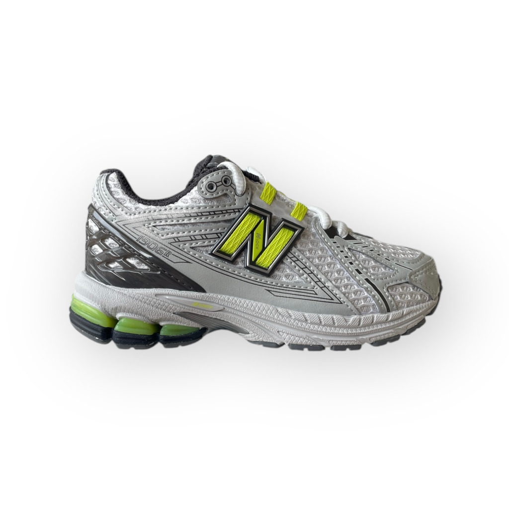 La New Balance 1906 Grigio/Giallo Fluo unisce look running contemporaneo e praticità quotidiana in una sneaker pensata per i più giovani. La tomaia in mesh e materiali sintetici garantisce traspirabilità e comfort, mentre il grigio combinato con logo “N” giallo fluo dona un tocco grintoso e moderno, perfetto per scuola e tempo libero.