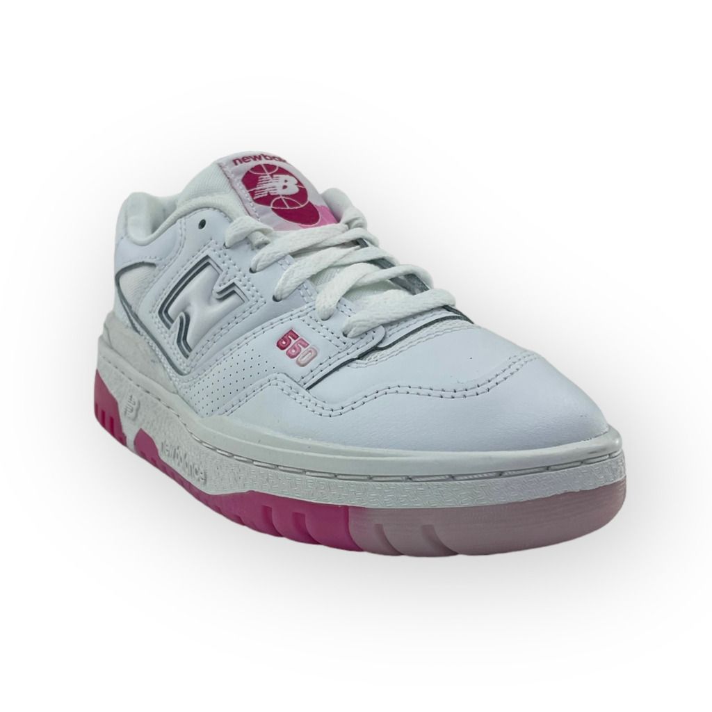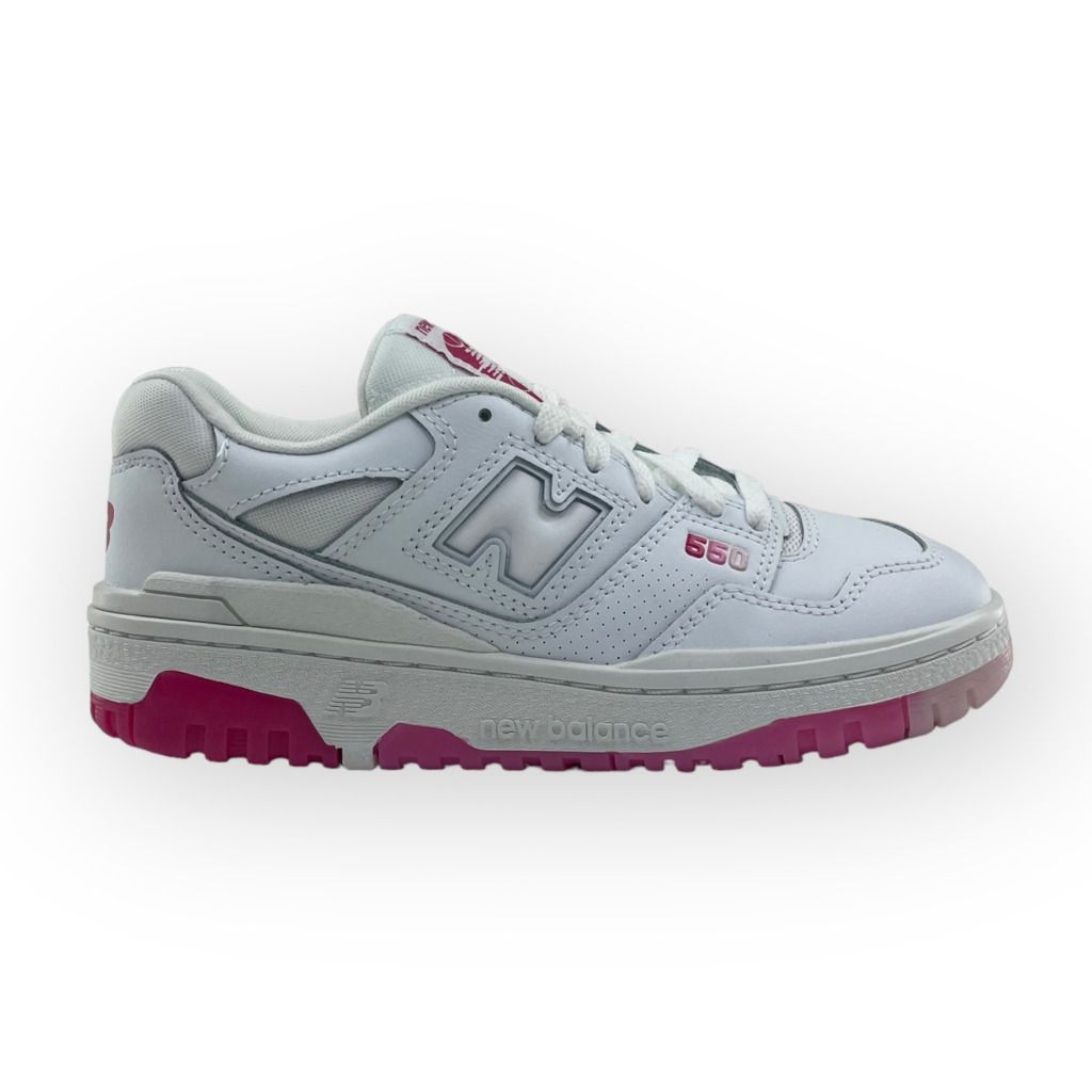 Scarpa bianca con suola rosa della linea New Balance. Il modello 550 sta diventando uno dei piโ ricercati grazie al suo stile unico e versatile capace di trasformare il tuo outfit in qualcosa di speciale.
