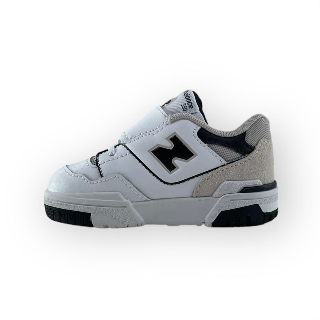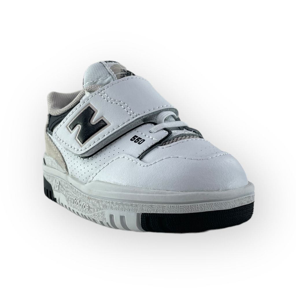 Il modello 550 ai piedi dei piโ piccoli. Bellissima sneaker con strappo unico nel colore bianco con rifiniture nere della linea New Balance.