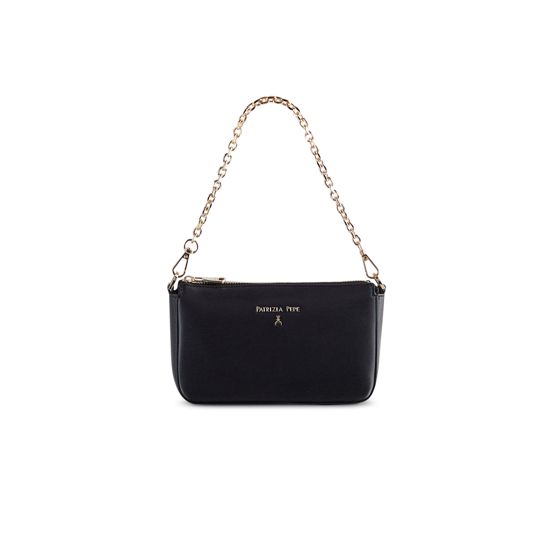 Il design in nero classico si abbina facilmente a qualsiasi outfit, mentre la tracolla regolabile permette di indossarla comodamente sia a spalla che crossbody. Un accessorio pratico e chic, ideale per completare look casual o più ricercati.