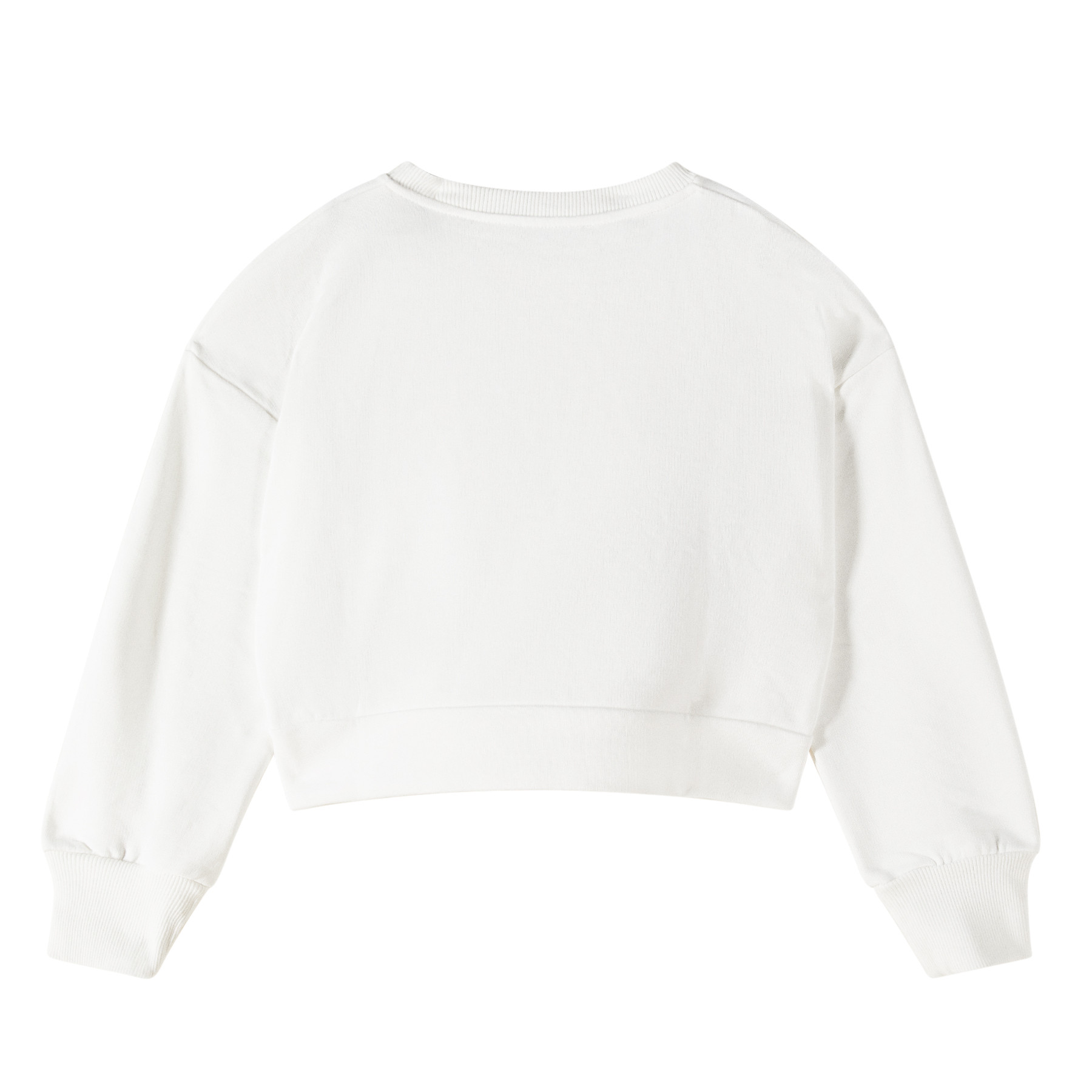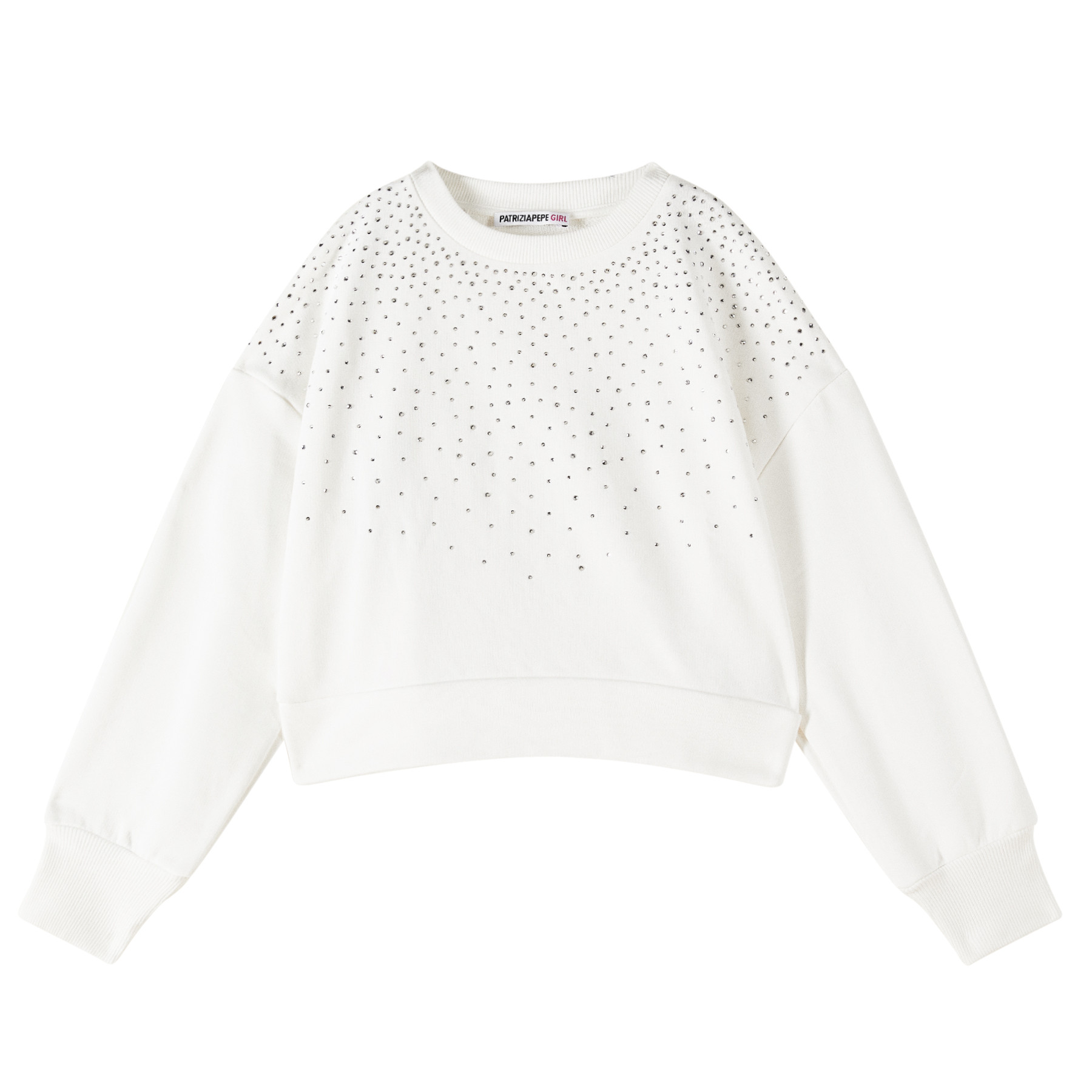 Una felpa luminosa e raffinata, perfetta per aggiungere un tocco chic ai look quotidiani. Realizzata in tessuto leggero e confortevole, si presenta in un elegante bianco puro, impreziosito da brillantini applicati che donano una luce discreta ma sofisticata.