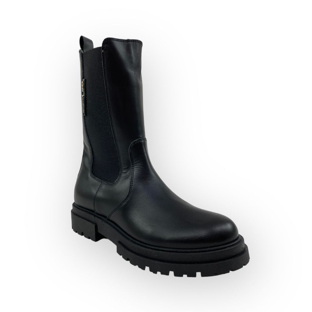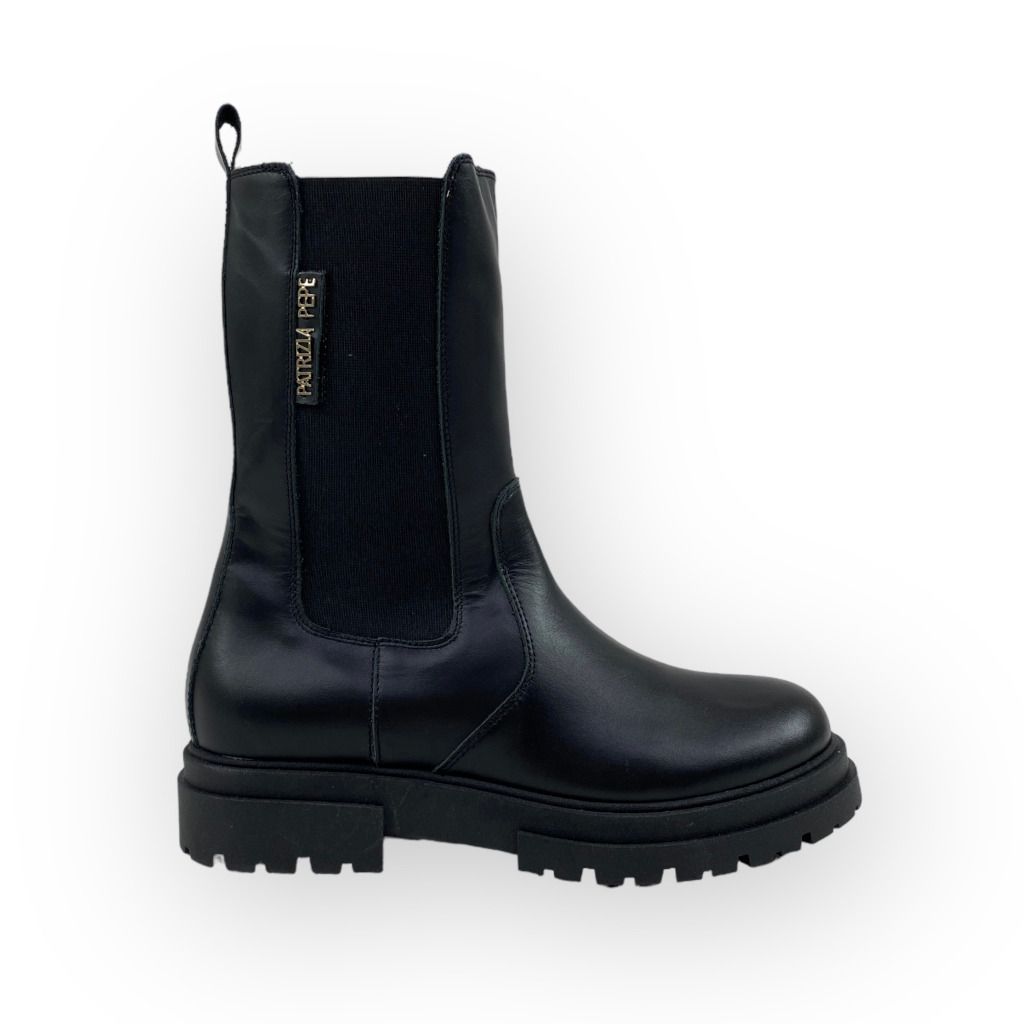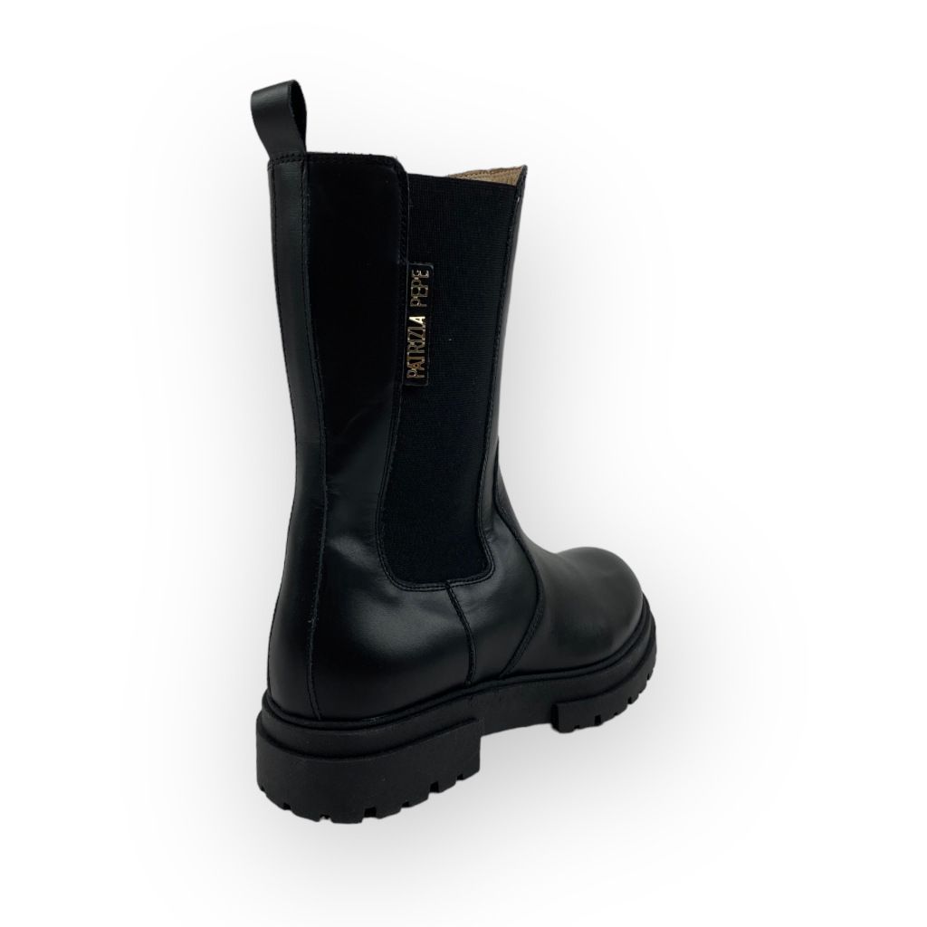Stivaletto della linea bambina Patrizia Pepe nel colore nero. Bello il dettaglio laterale che rende lo stivale più dinamico.