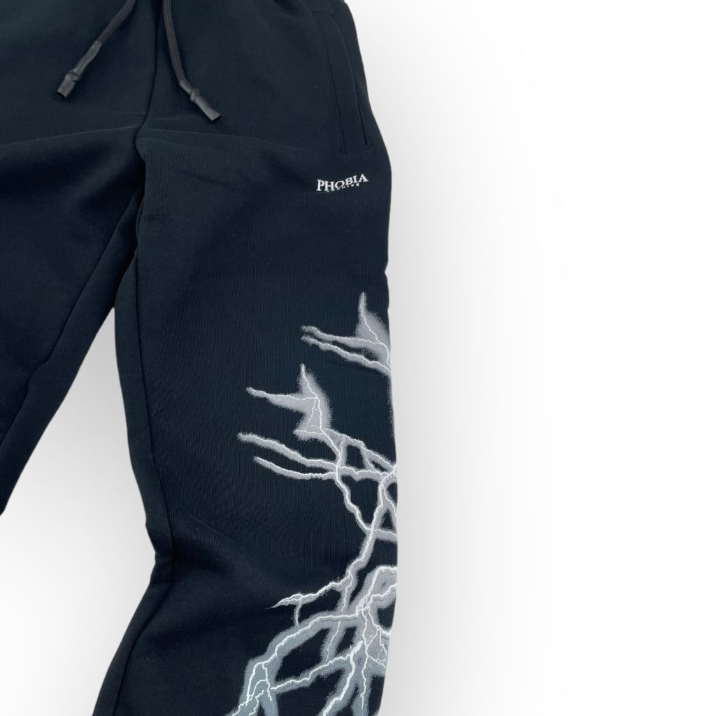 | Info Prodotto | Pantalone in felpa di colore nero con fulmini bianchi da bambino, della linea Phobia. |