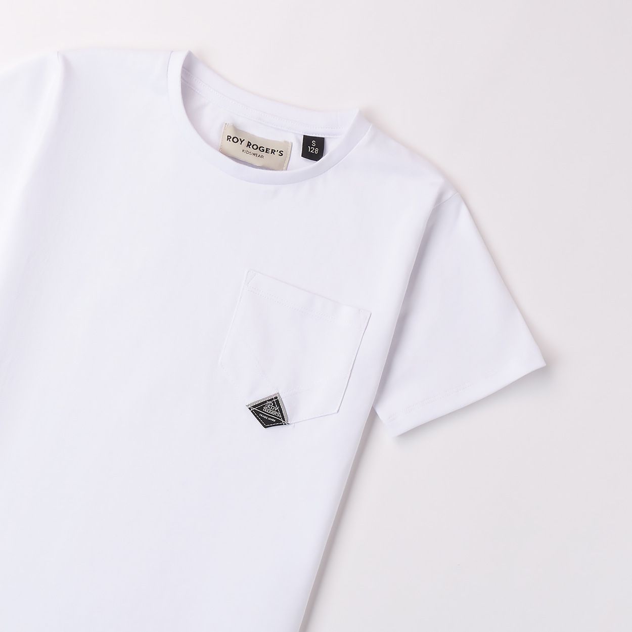 | Info Prodotto | T-shirt mezza manica con taschino nei colori bianco e nero da bambino della linea Roy Roger's. |