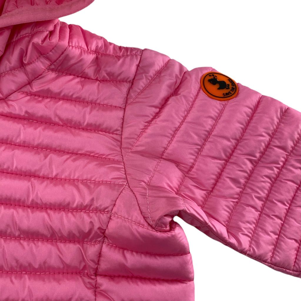 Giubbotto da bambina del brand Save the duck. Particolare il tessuto esterno in raso leggermente lucido. Adatto per la stagione primaverile e autunnale. Indossalo tutti i giorni per essere sempre di tendenza. nnMATERIALE: 100% nylon, Imbottitura 100% poliestere.