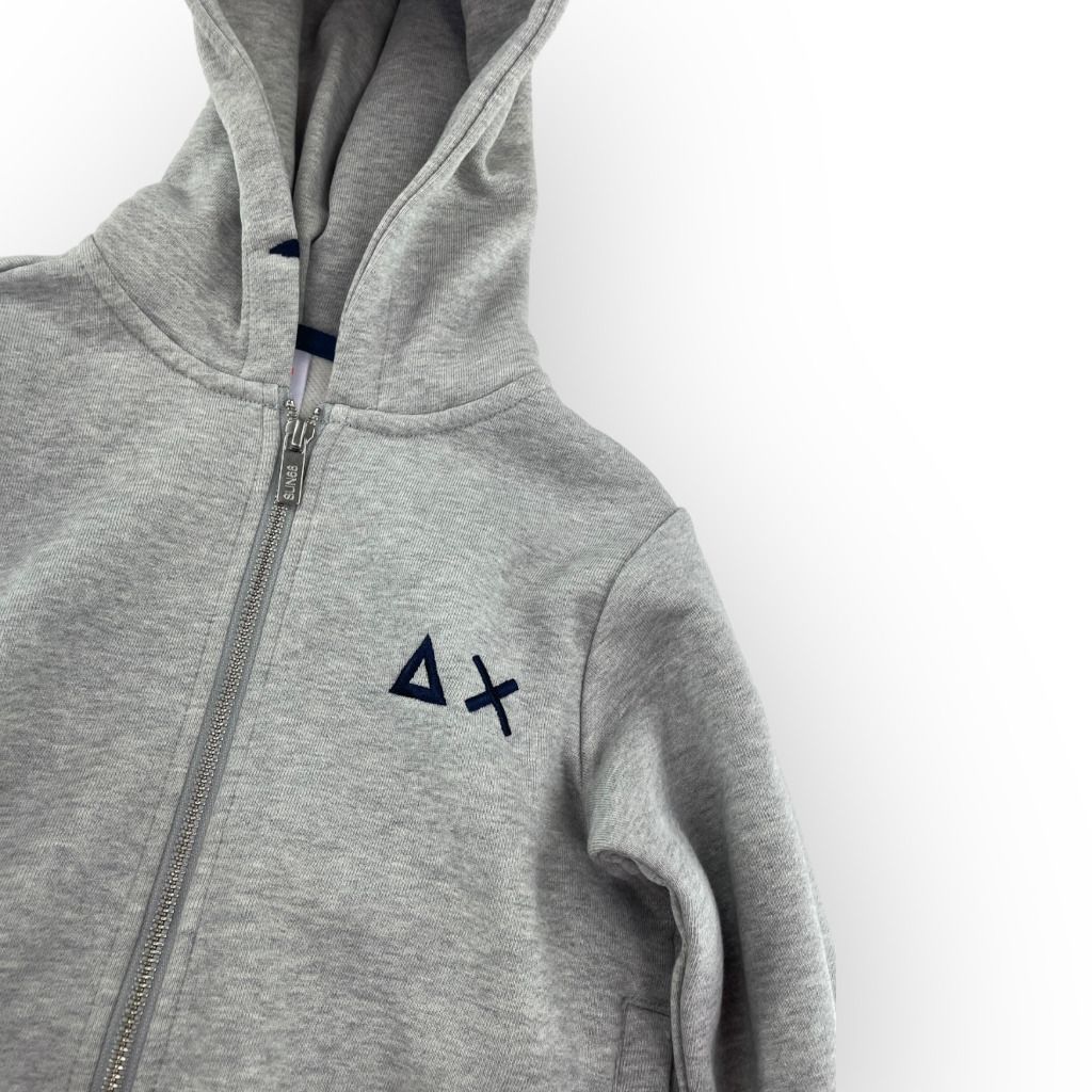 Felpa di colore grigio aperta con zip e cappuccio da bambino della linea Sun68.