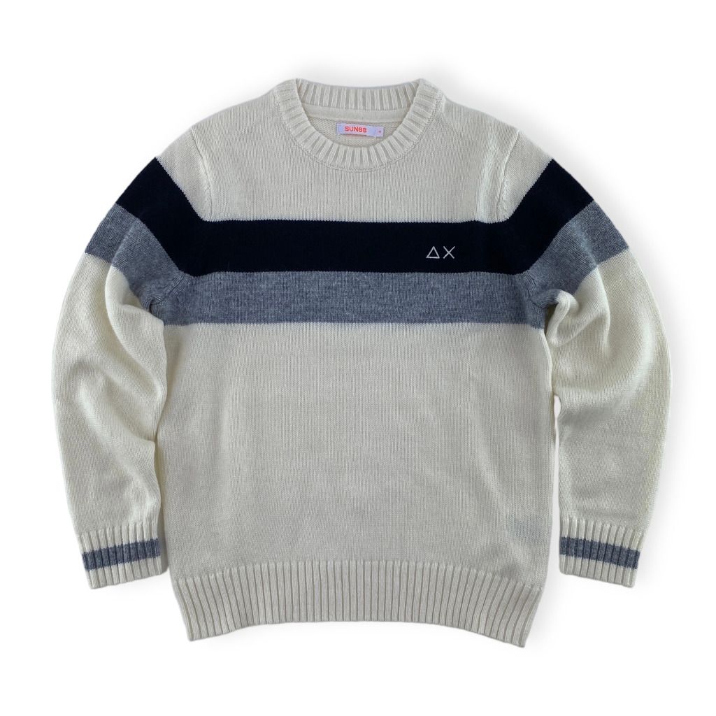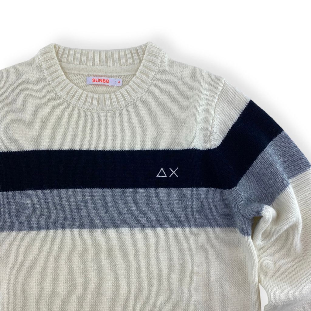 Maglia paricollo panna grigio e blu della linea da bambino di Sun 68.