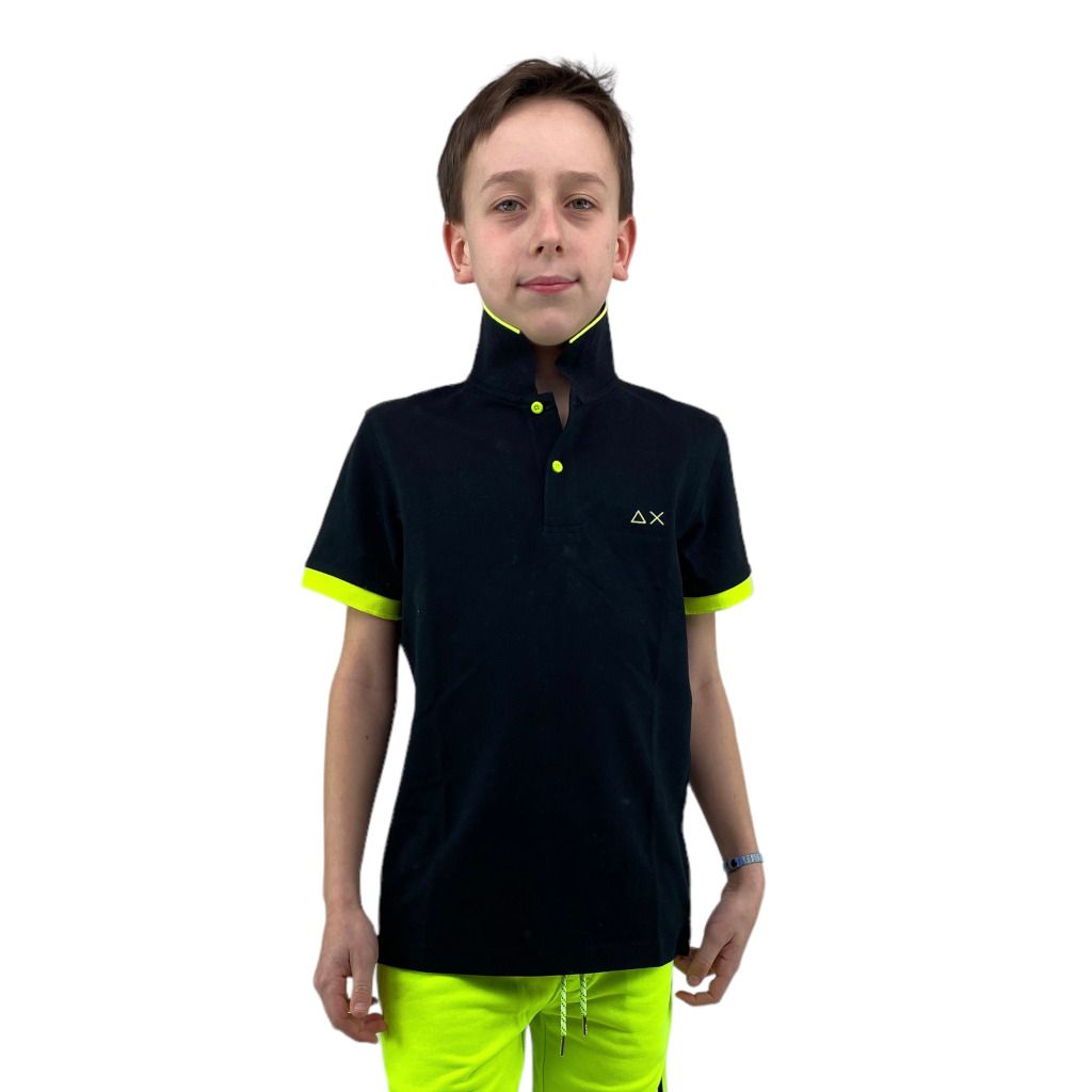 Polo di colore nero e fluo della linea Sun68 bimbo.