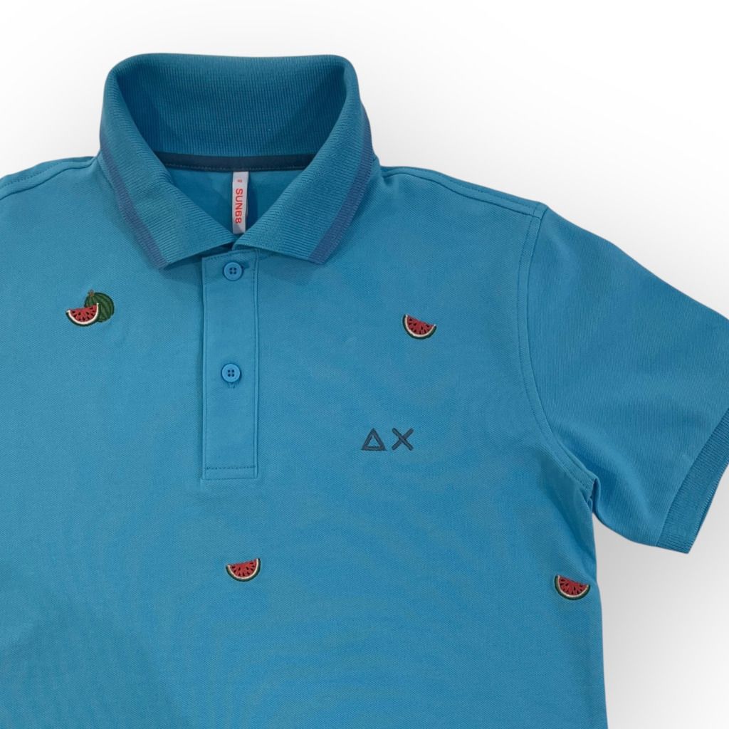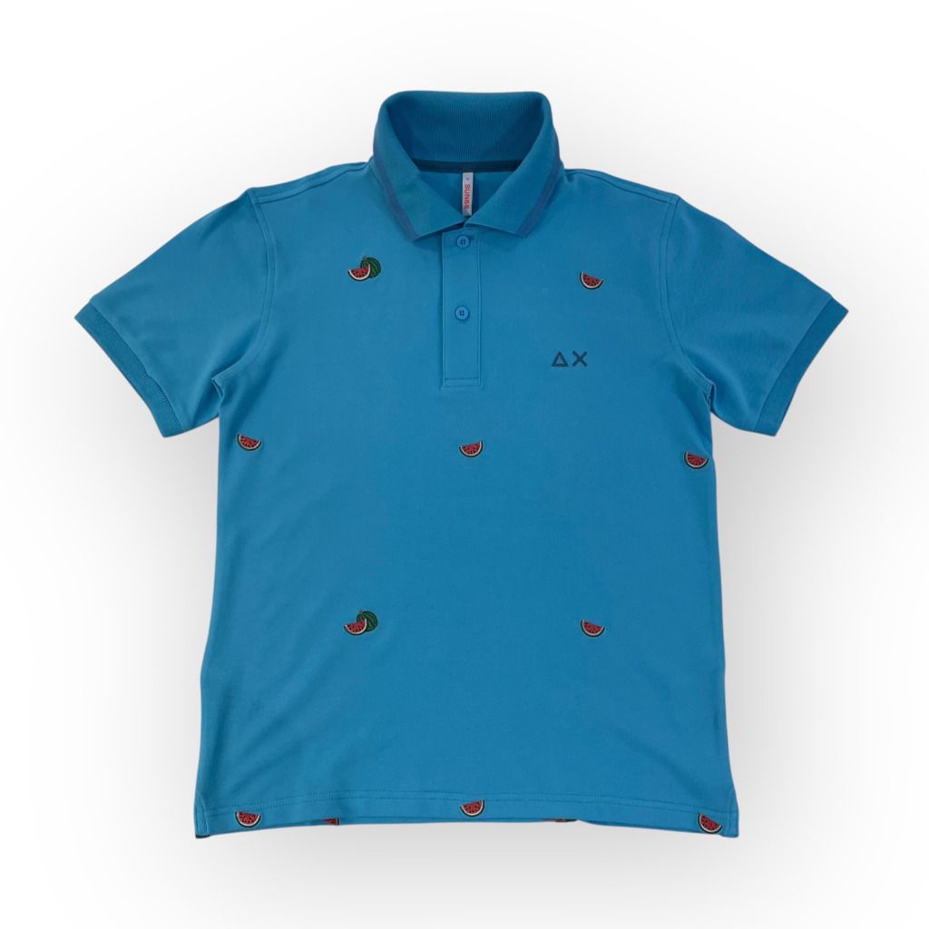 Simpaticissima polo a maniche corte della linea Sun68 bambino. I suoi ricami con cocomeri rendono questa polo unica nel suo genere.