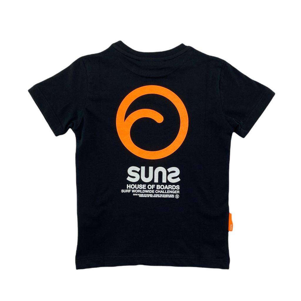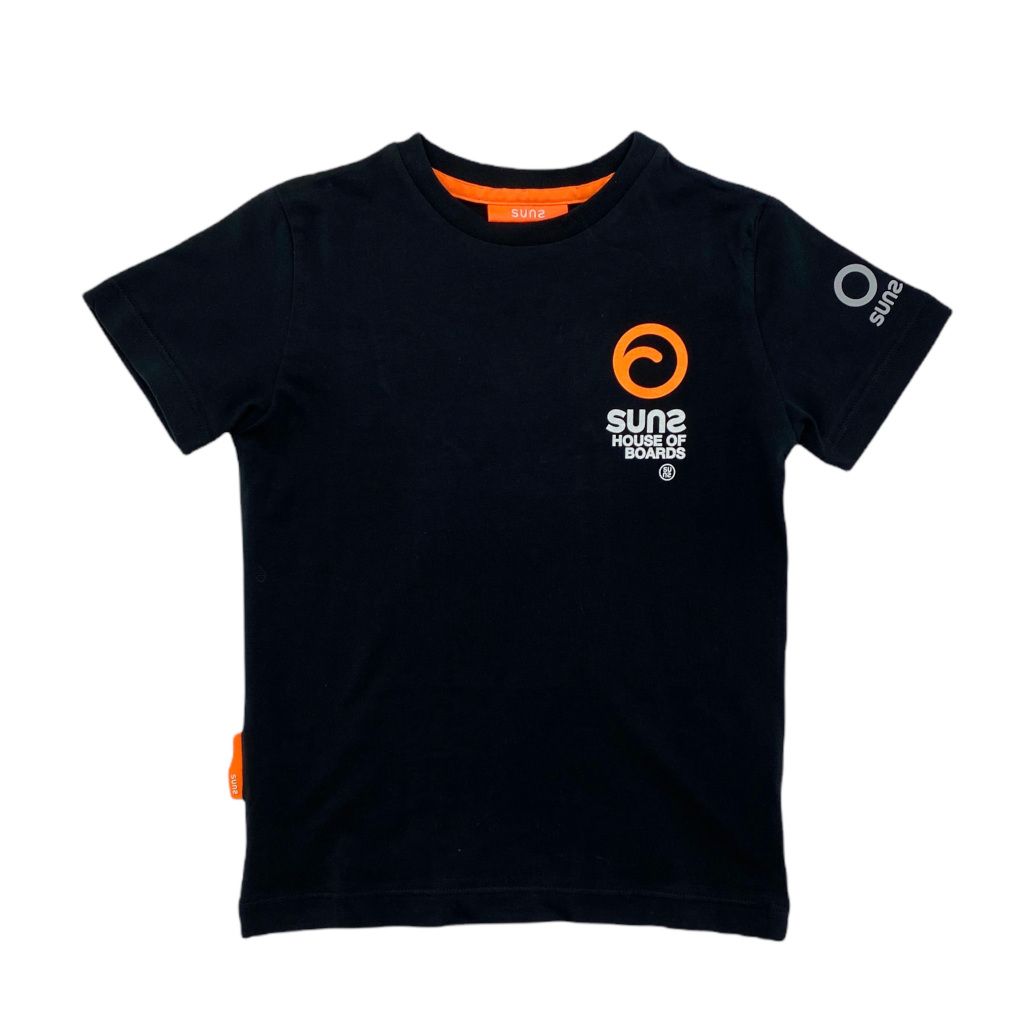 | Info Prodotto | T-shirt nera con stampa fluo e bianca della linea da bambino Suns. |