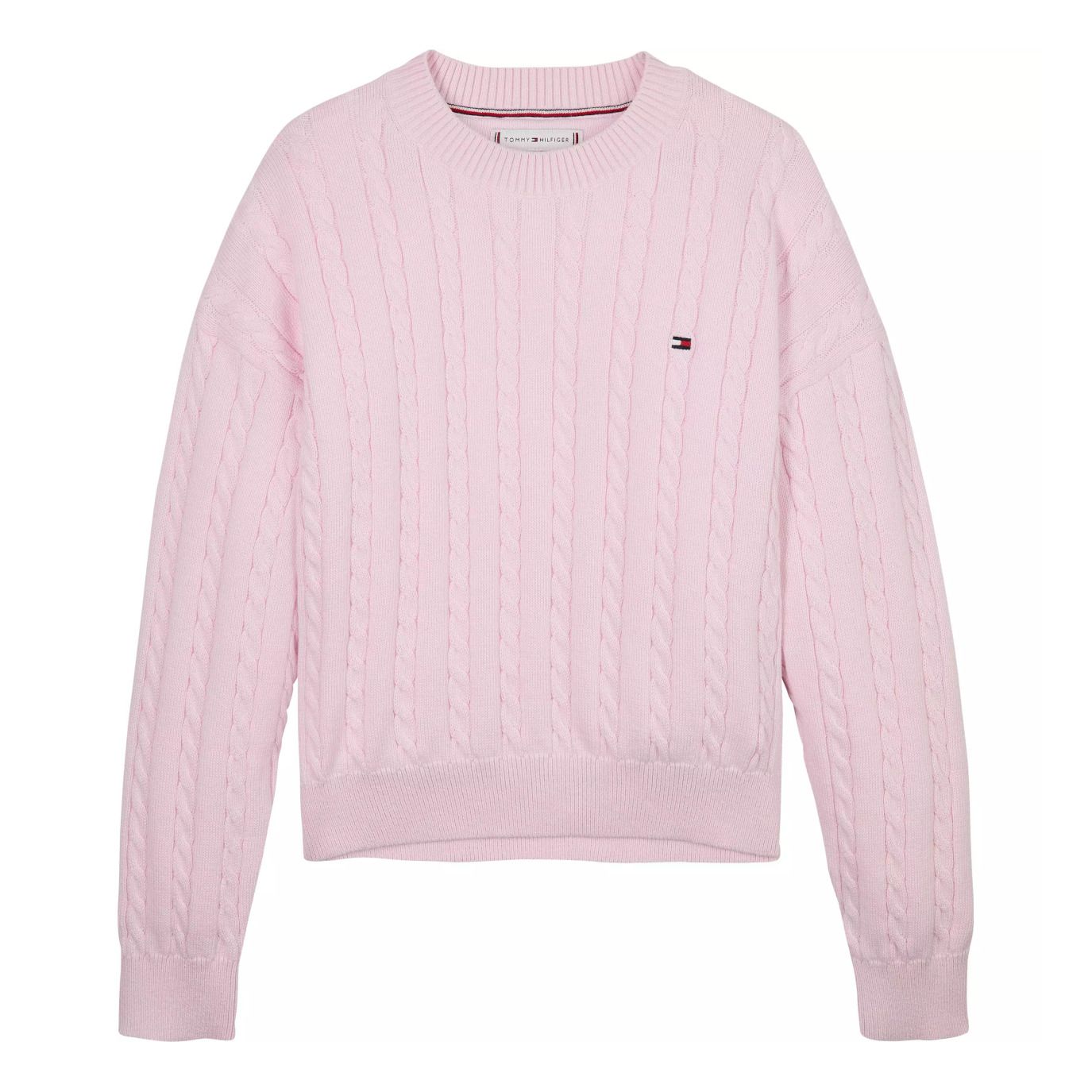 Maglia con trecce rosa della linea da bambina Tommy Hilfiger.