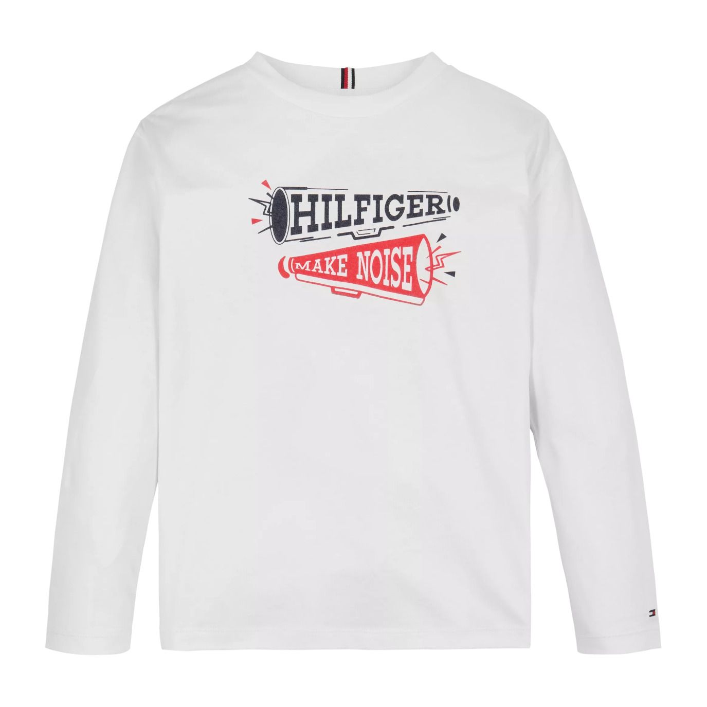 T-shirt manica lunga di colore bianca con scritta rosso/blu da bambino della linea Tommy Hilfiger.