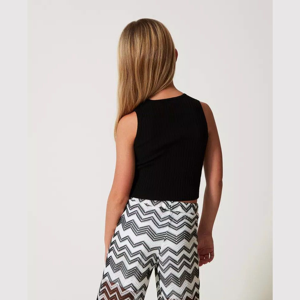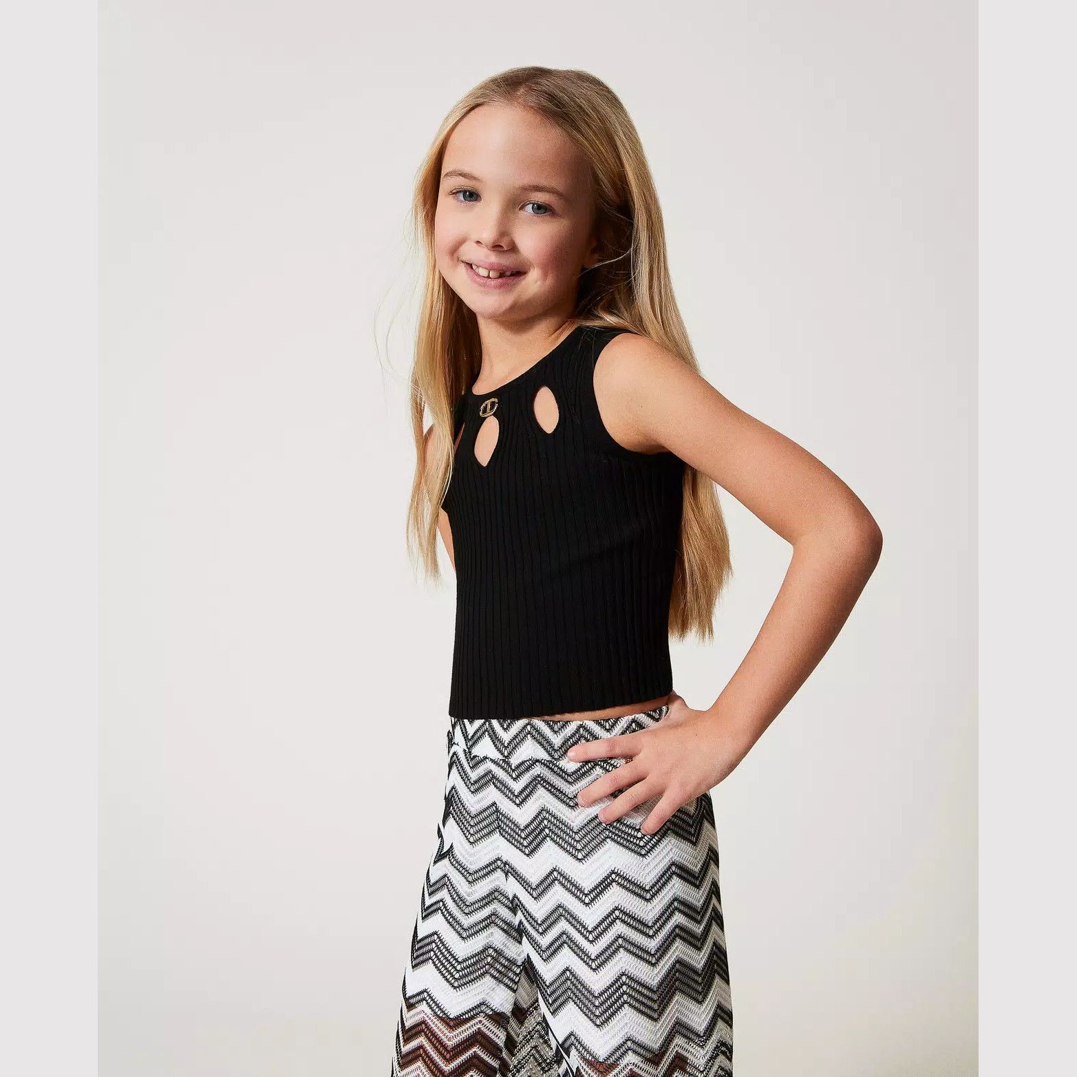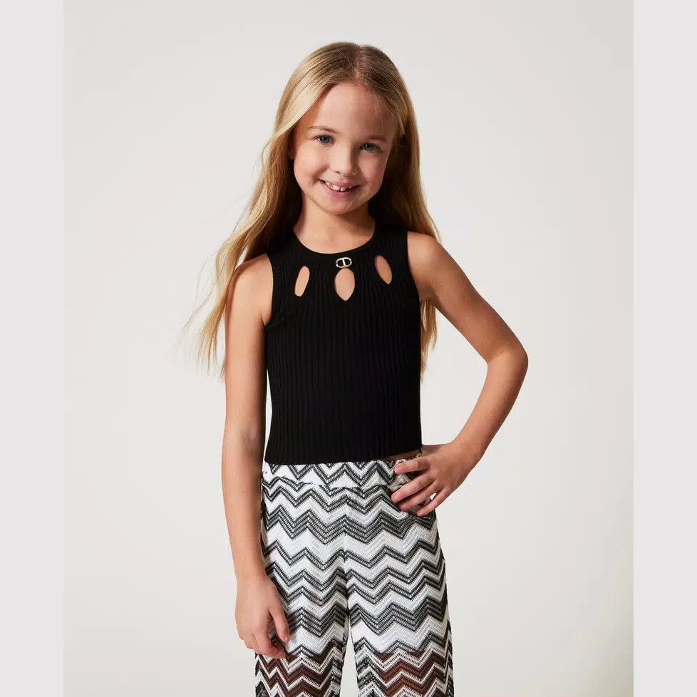| Info Prodotto | Canotta di colore nero con buchi davanti da bambina della linea Twinset. |