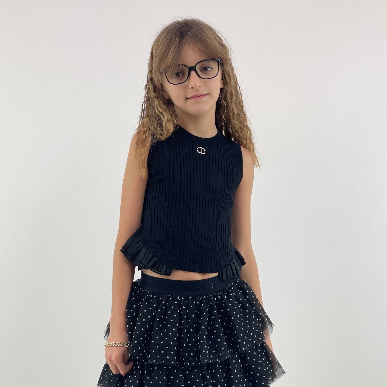 Canotta in cannette di colore nera da bambina della linea Twinset.