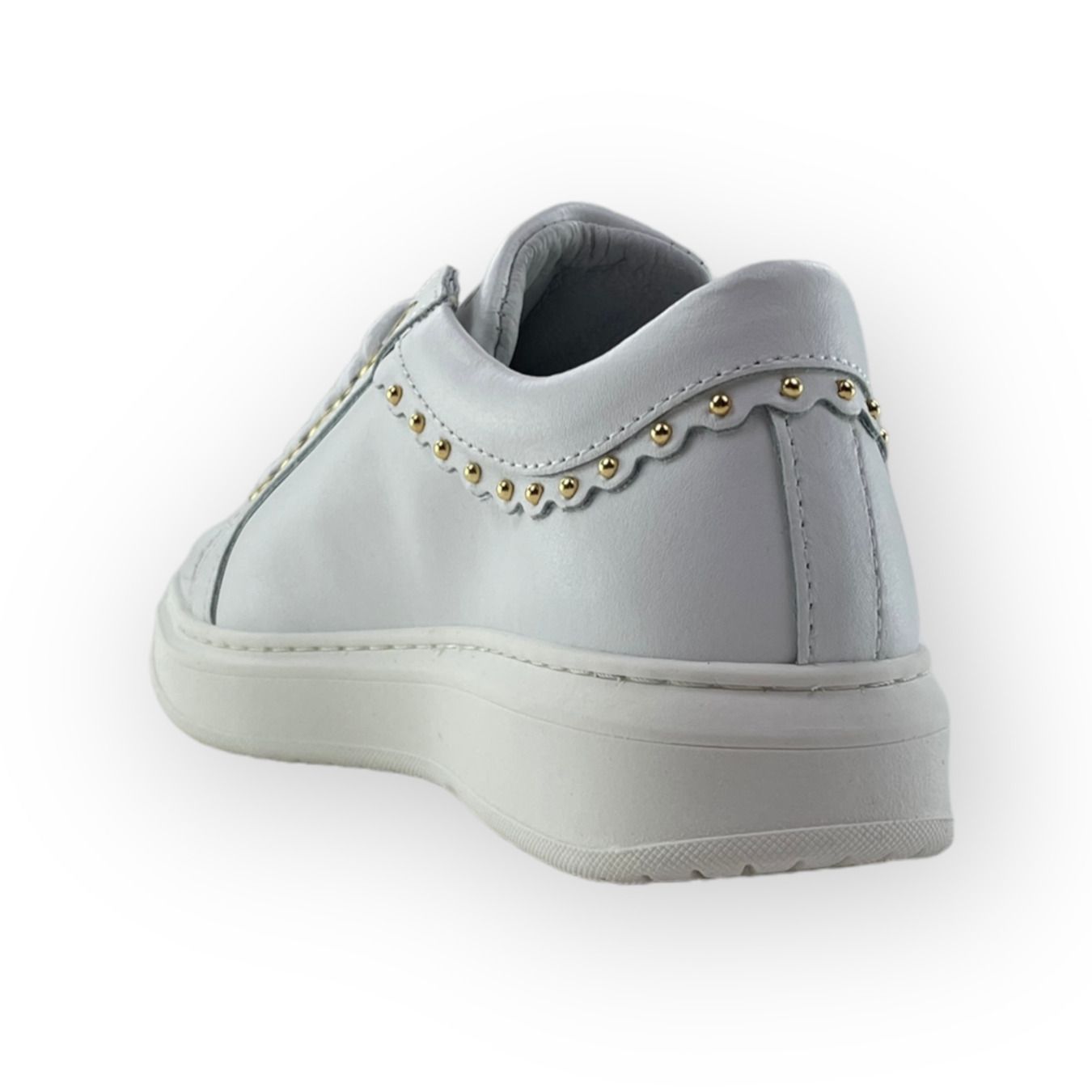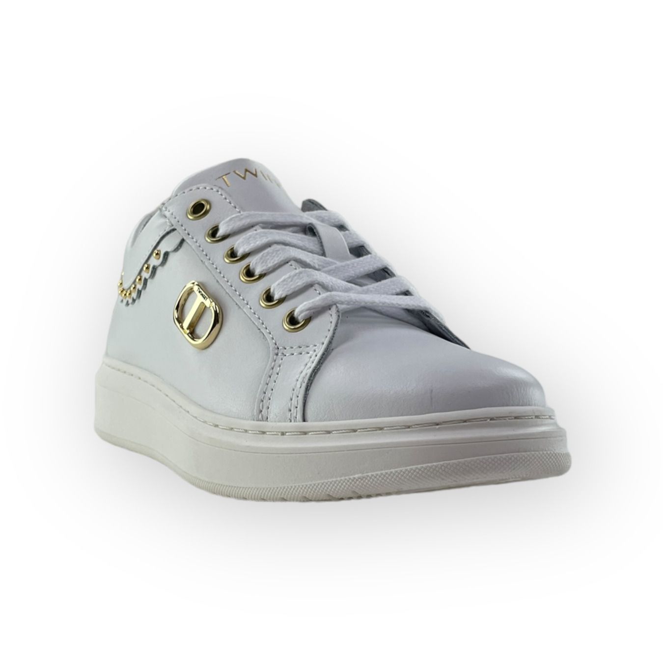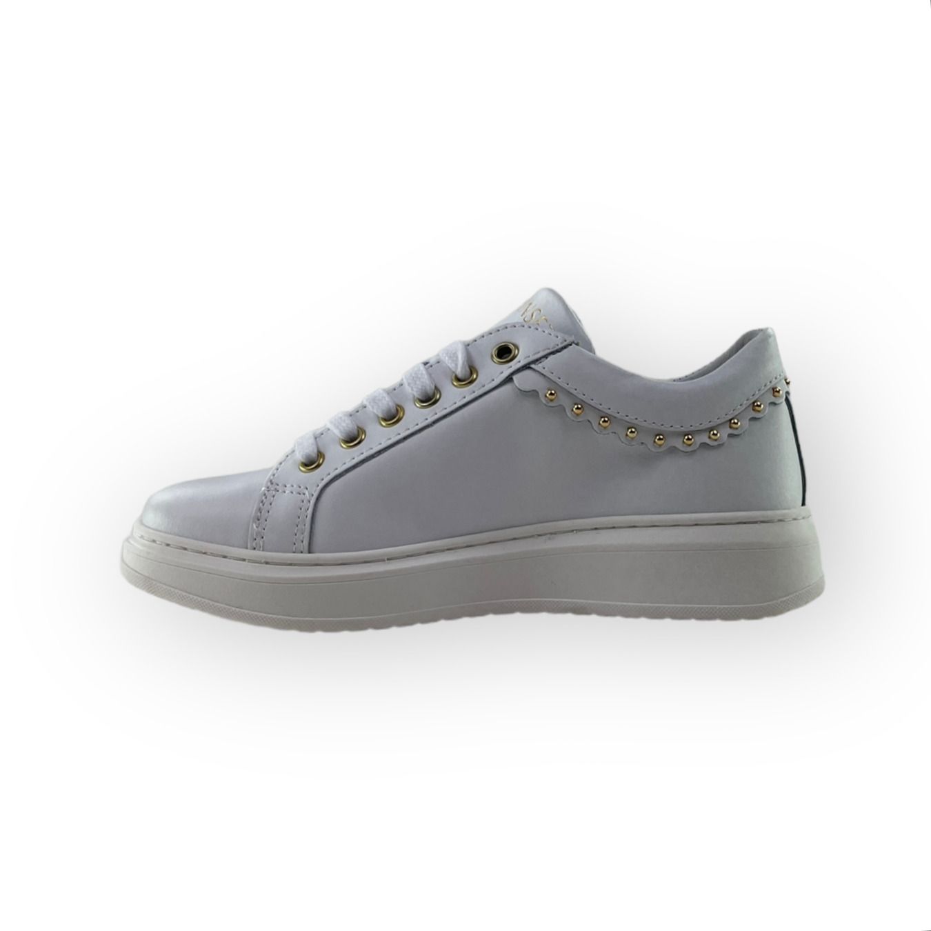 | Info Prodotto | Scarpa legata di colore bianca con chiodini oro da bambina della linea Twinset. |