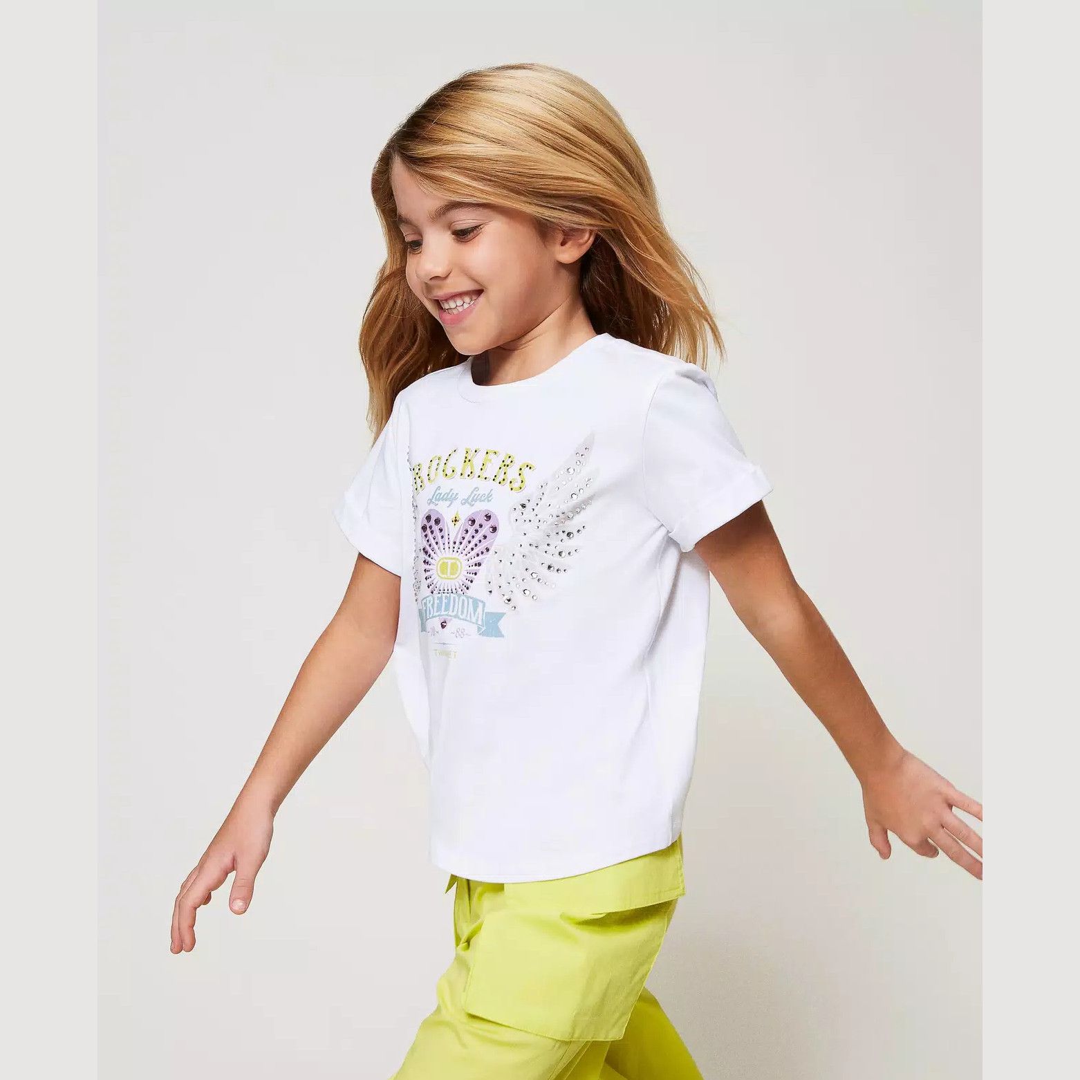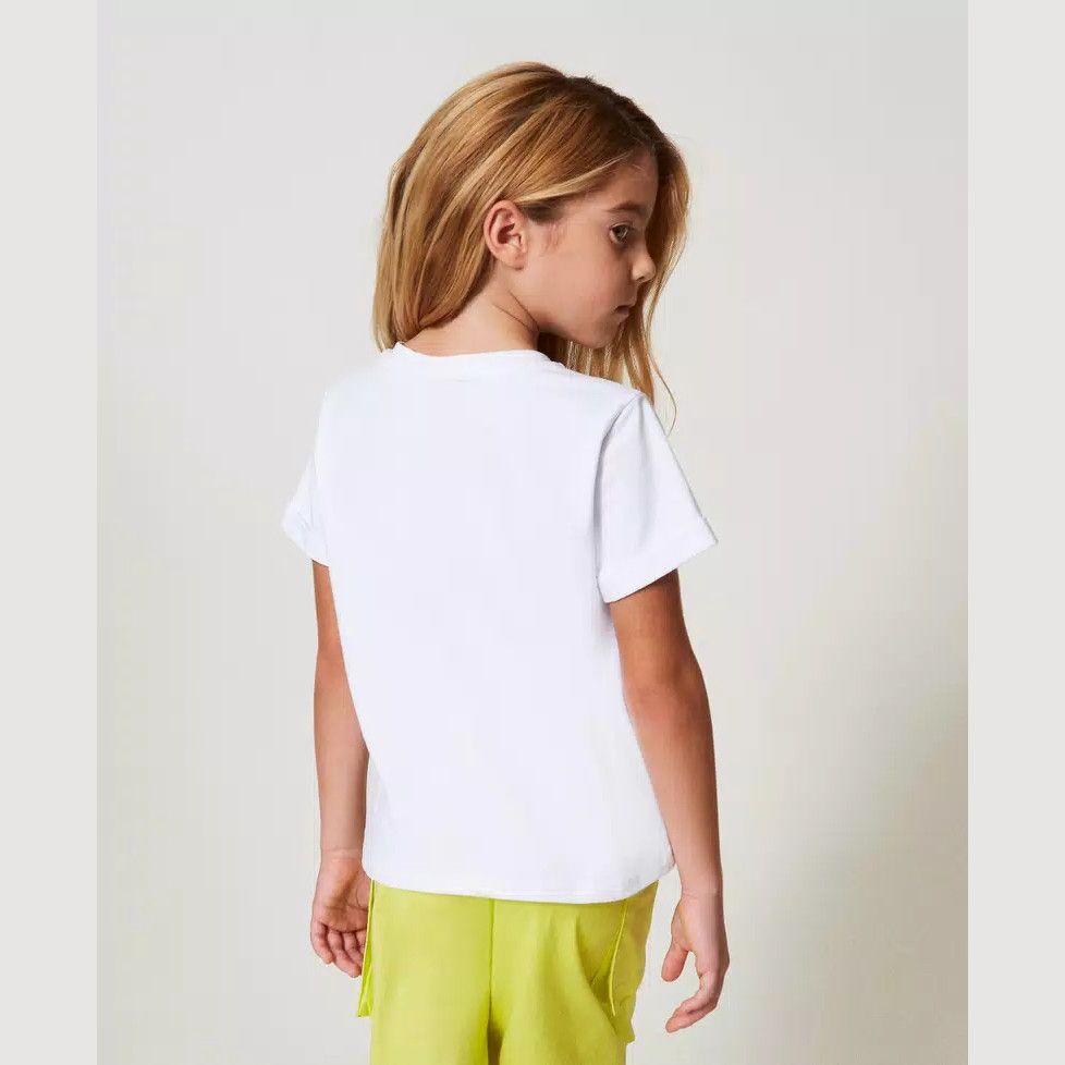 T-shirt mezza manica di colore bianco da bambina della linea Twinset.