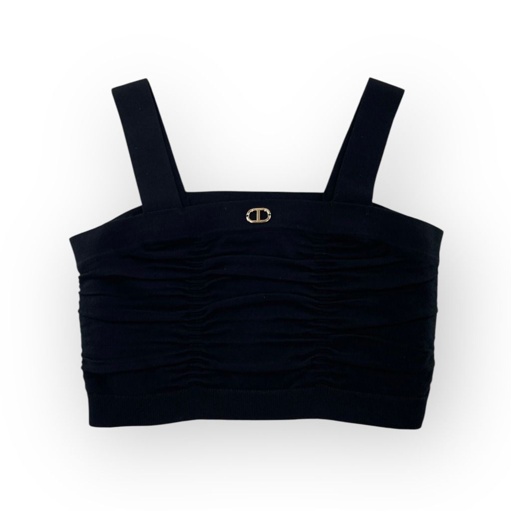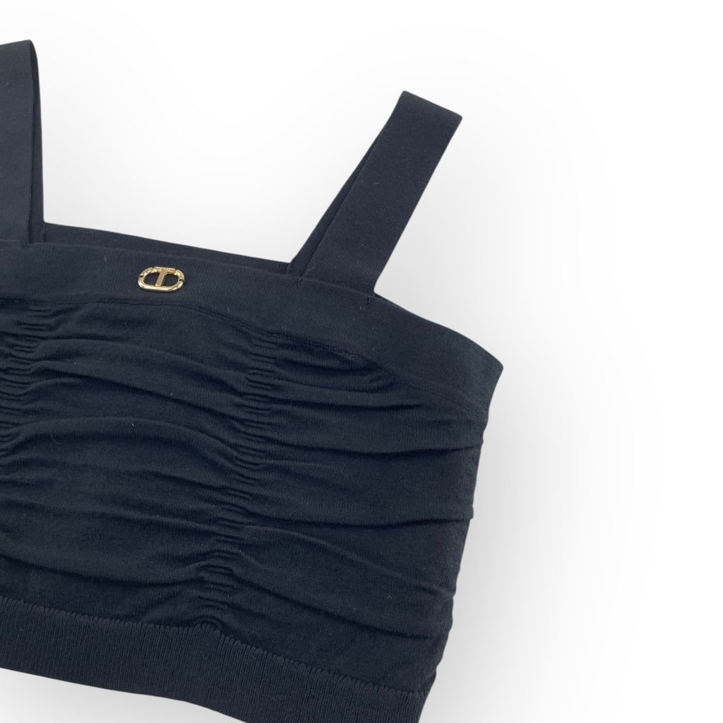 Top corto di colore nero e giallo da bambina della linea Twinset.